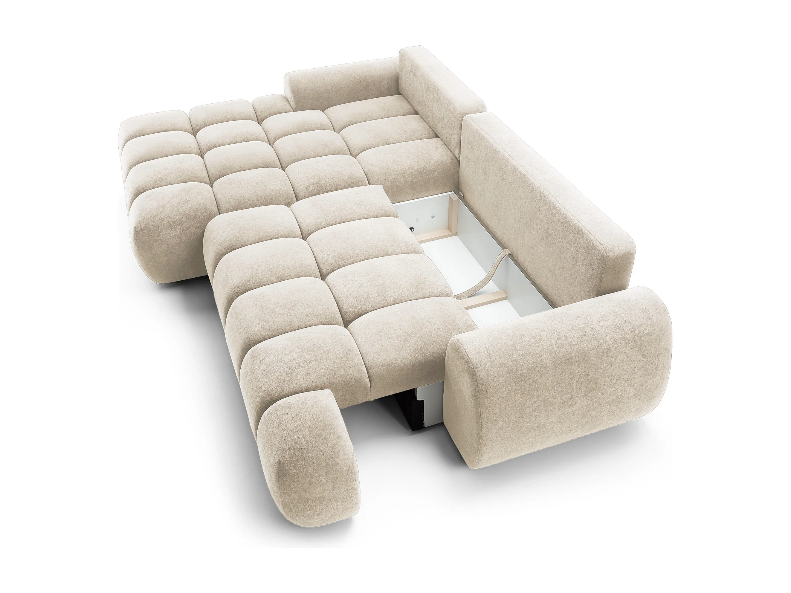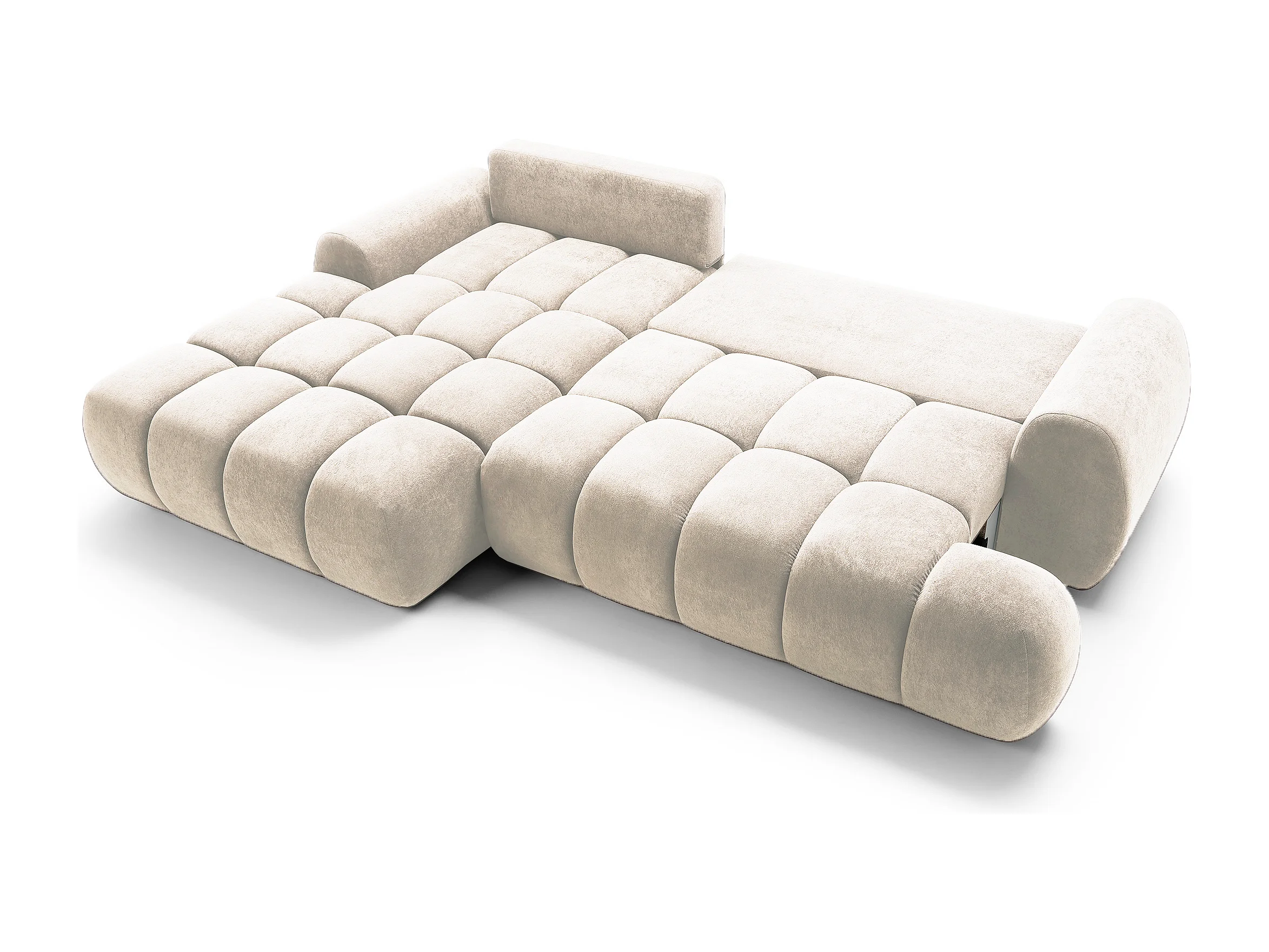 Emporius Valerio Ecksofa 280 cm - Schlafsofa mit Bettkasten, Links - Samt Creme (Gobi 1)