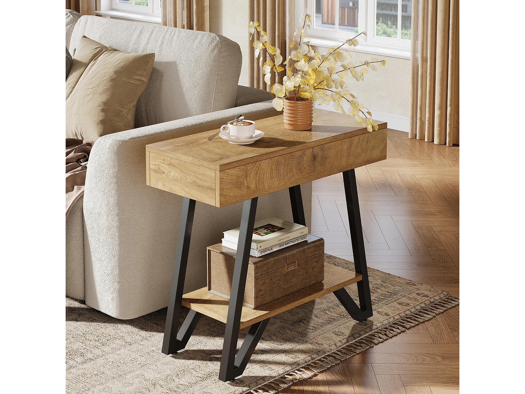 End-Beistelltisch für das Wohnzimmer, schmaler Coucharm-Beistelltisch mit Ablageschränken