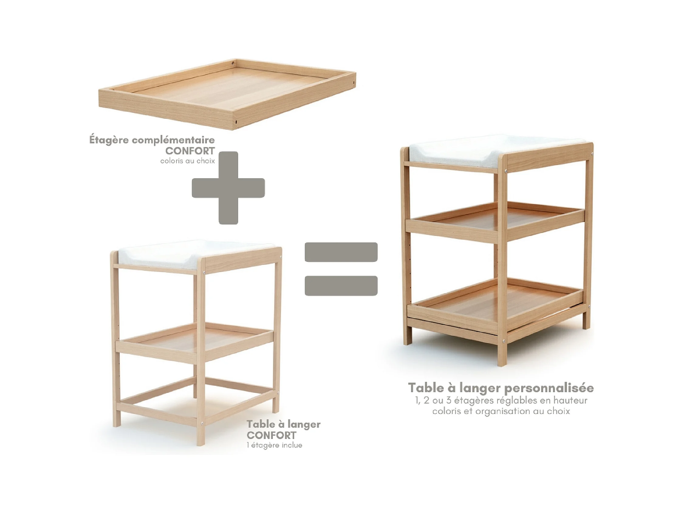Regal für Wickeltisch CONFORT Holz Buche Lackiert