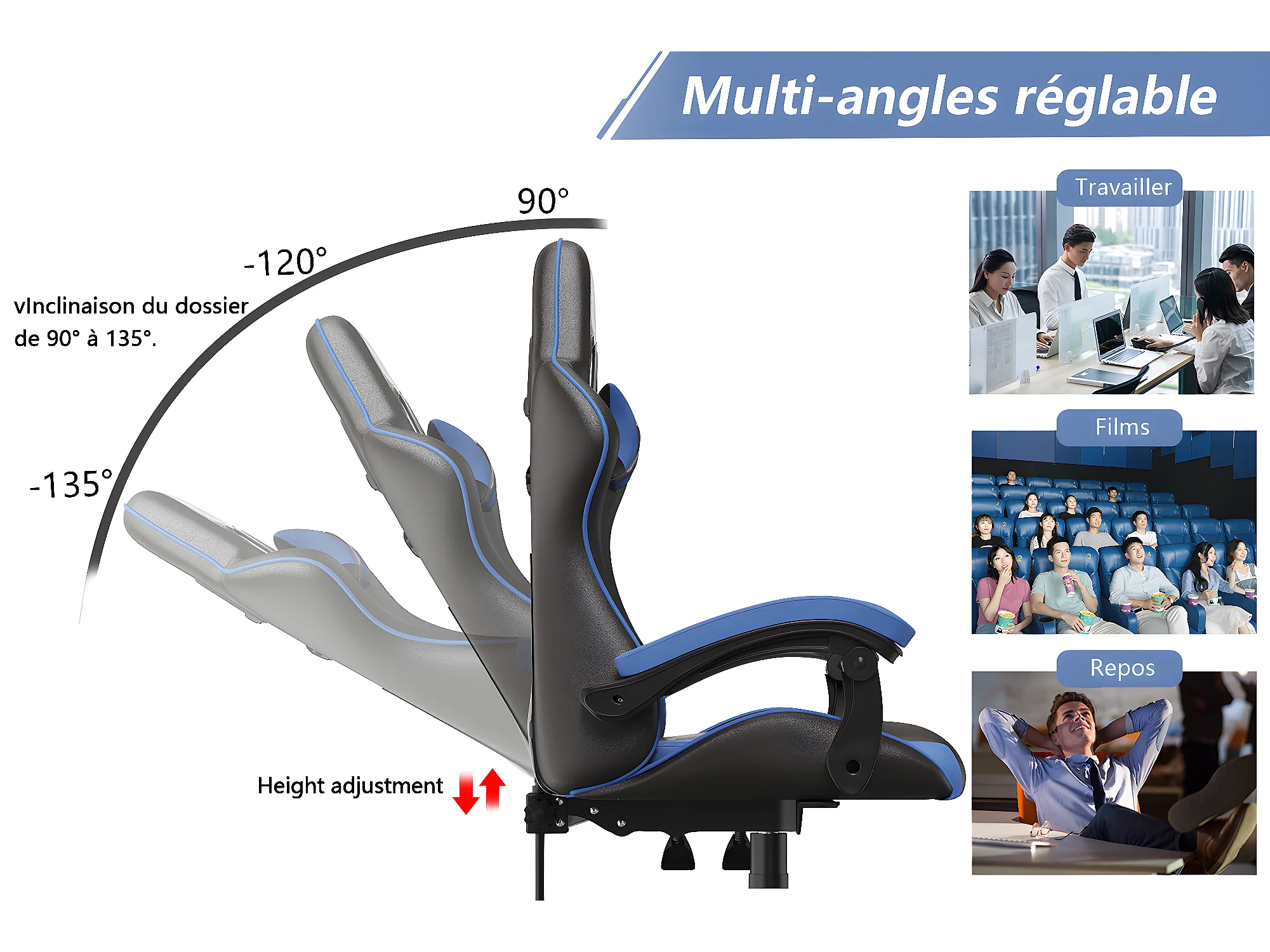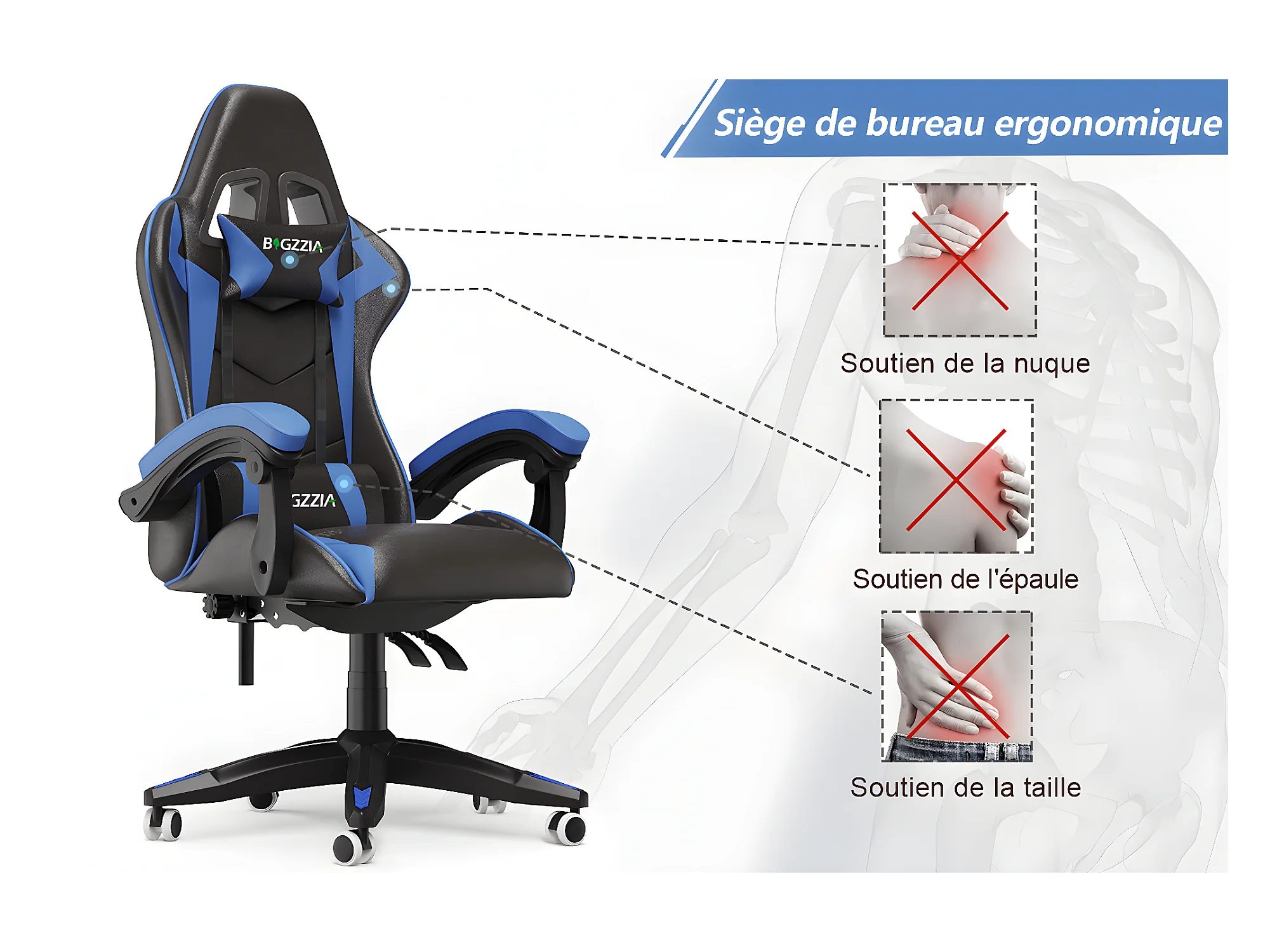 Ergonomischer Gaming-Stuhl mit Kopfstütze und Lordosenstütze – blau