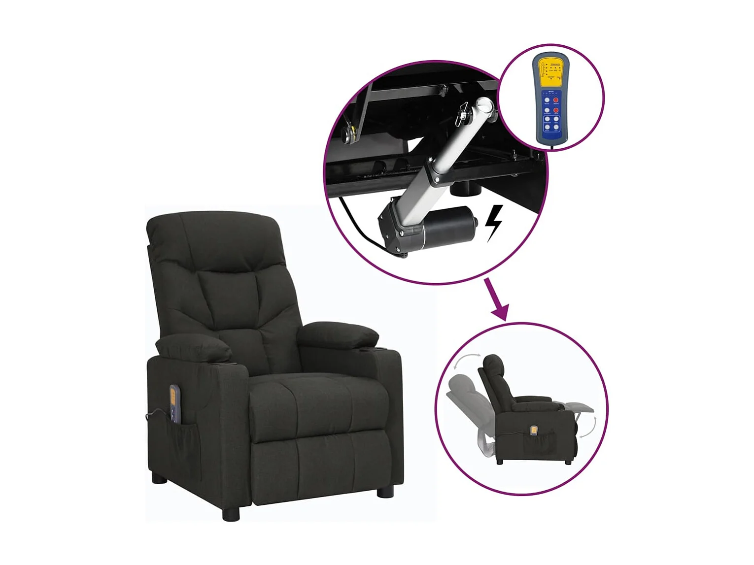Erian Massagesessel mit Aufstehlfe Schwarz Stoff