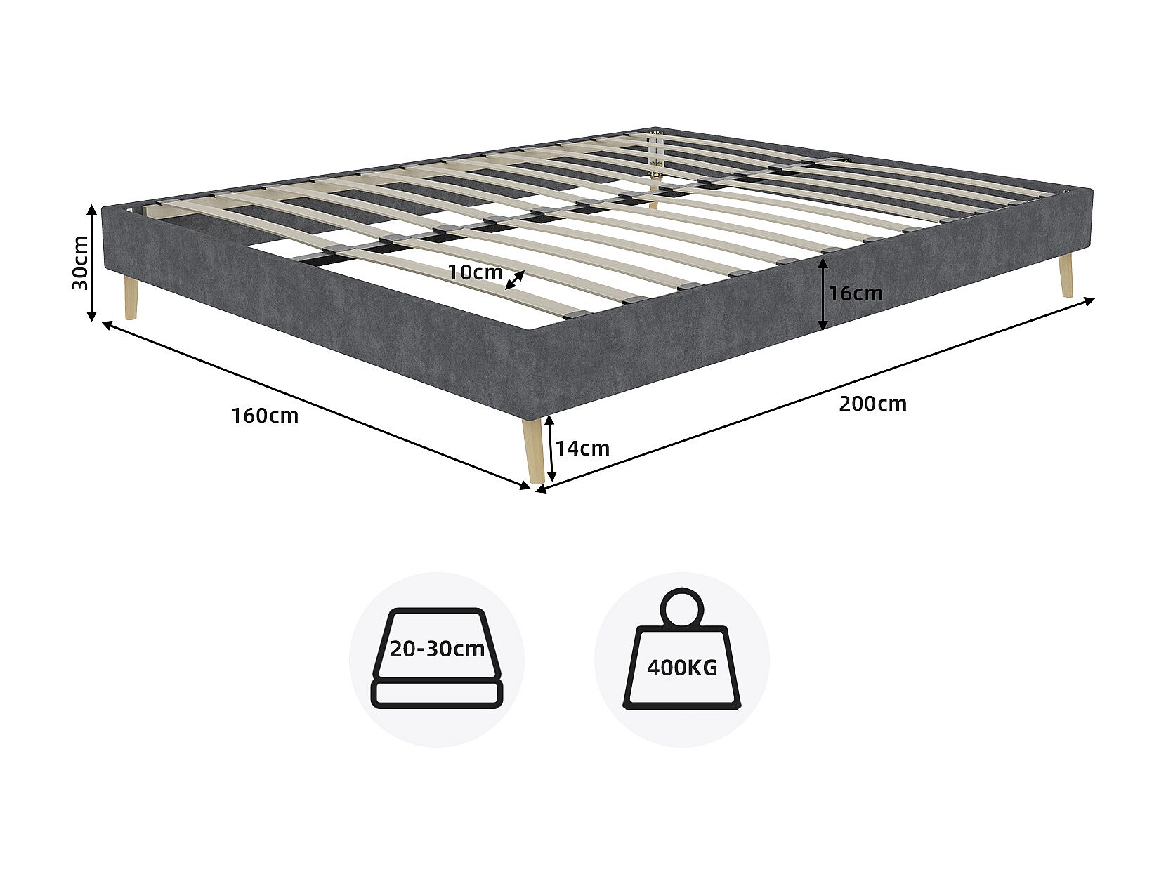 Erwachsenenbett 160 x 200 cm – Doppelbett mit Holzbeinen – grauer Samt – Matratze nicht enthalten