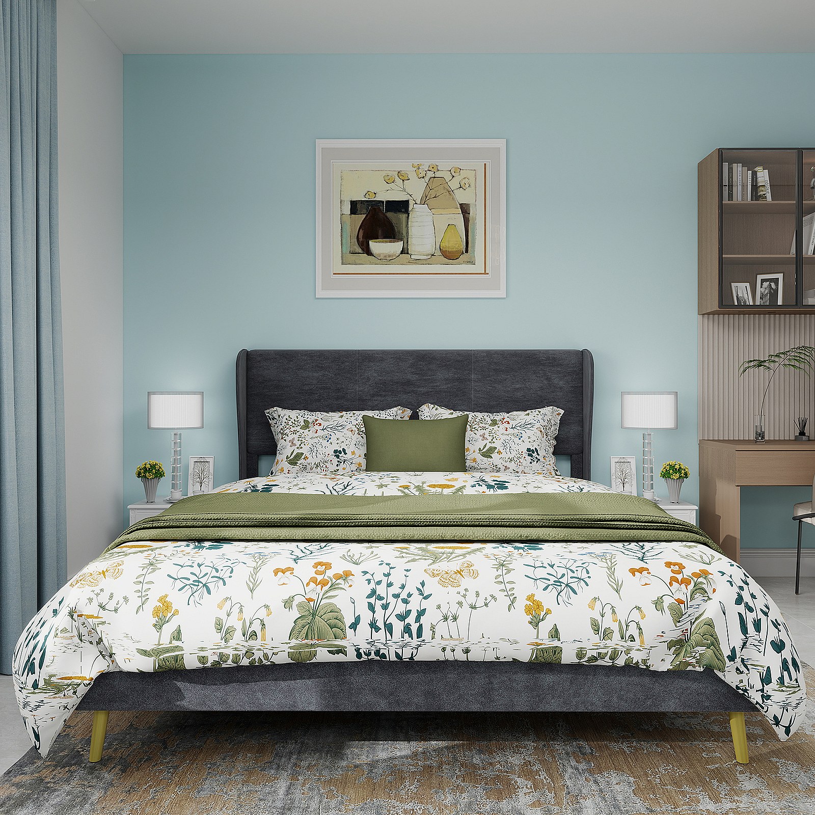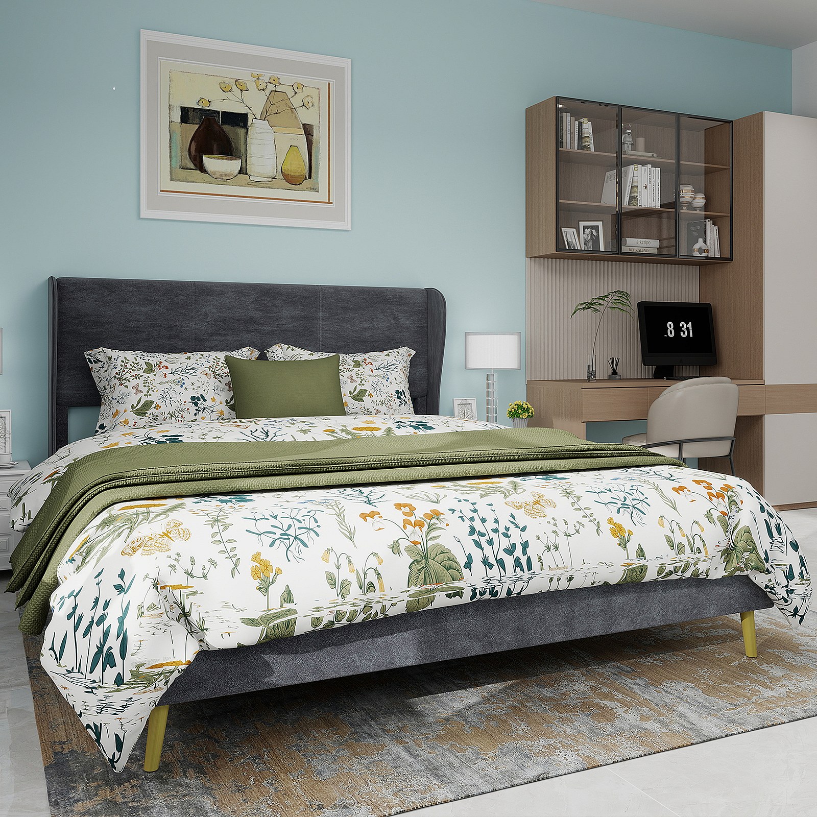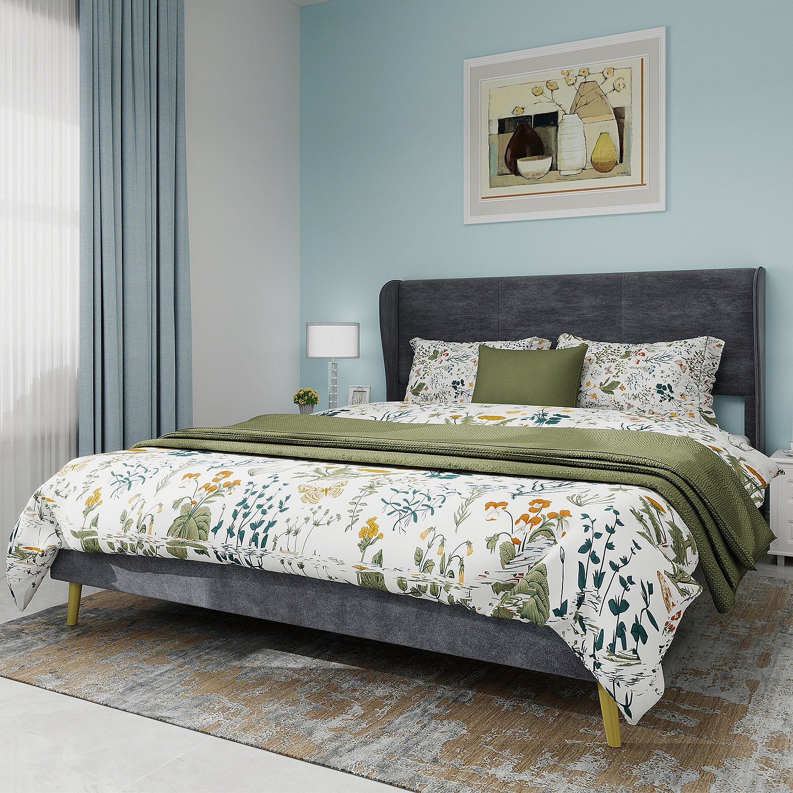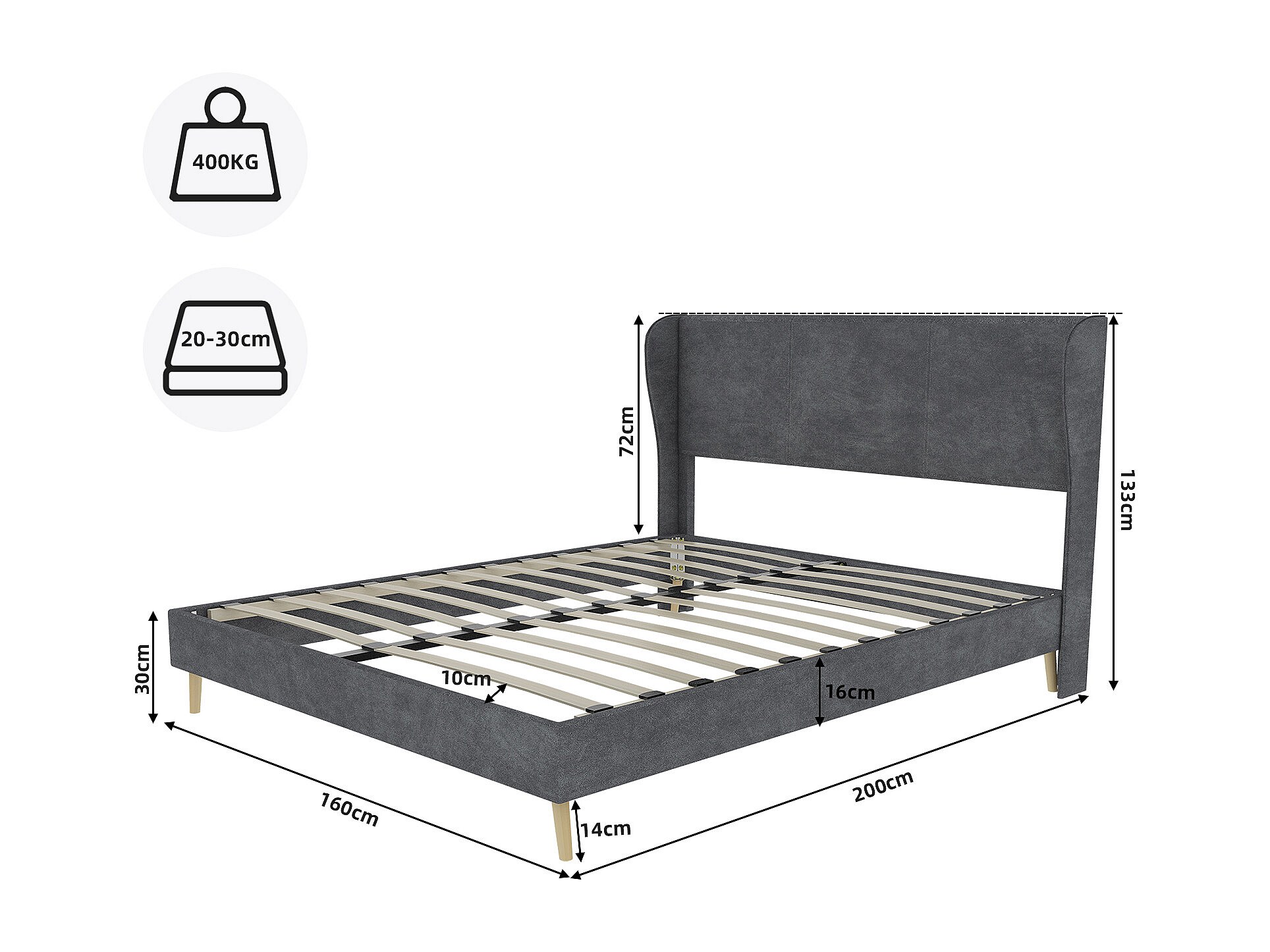Erwachsenenbett 160 x 200 cm - Doppelbett mit Holzbeinen und weicher Rückenlehne - grauer Samt - Matratze nicht enthalten