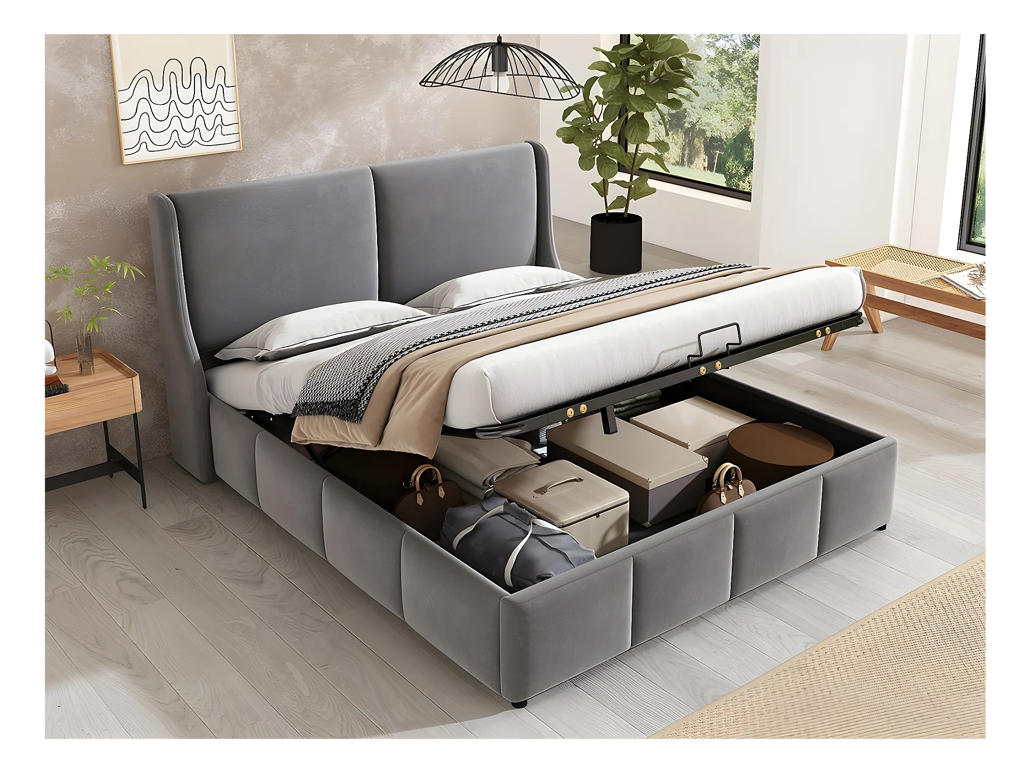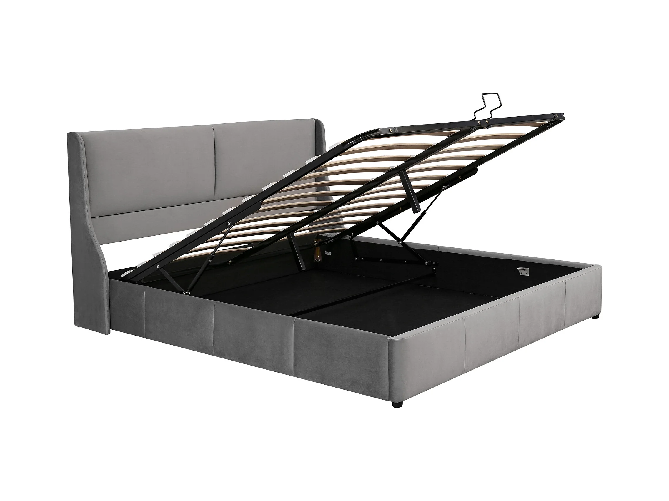 Bett für Erwachsen aus samt – Bett mit Stauraum und Lattenrost – 160 x 200 cm – grau