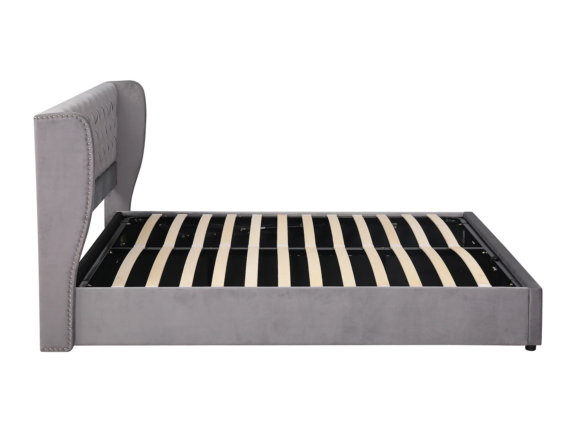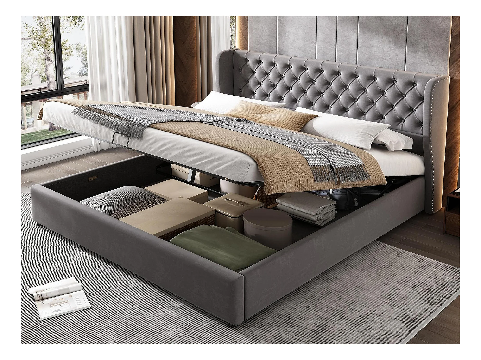 Samtgepolstertes Stauraumbett 160 x 200 cm mit Lattenrost – Grau