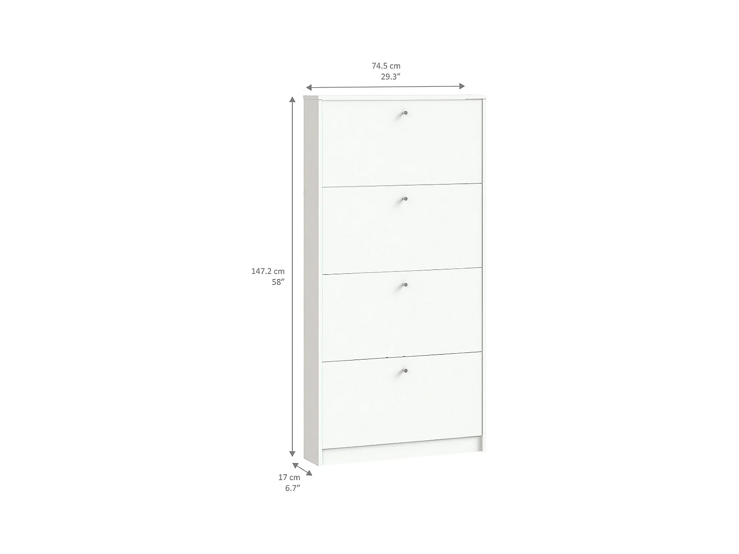 Escape Schuhschrank mit 4 Klappen Breite 75 cm, Höhe 148 cm weiss.