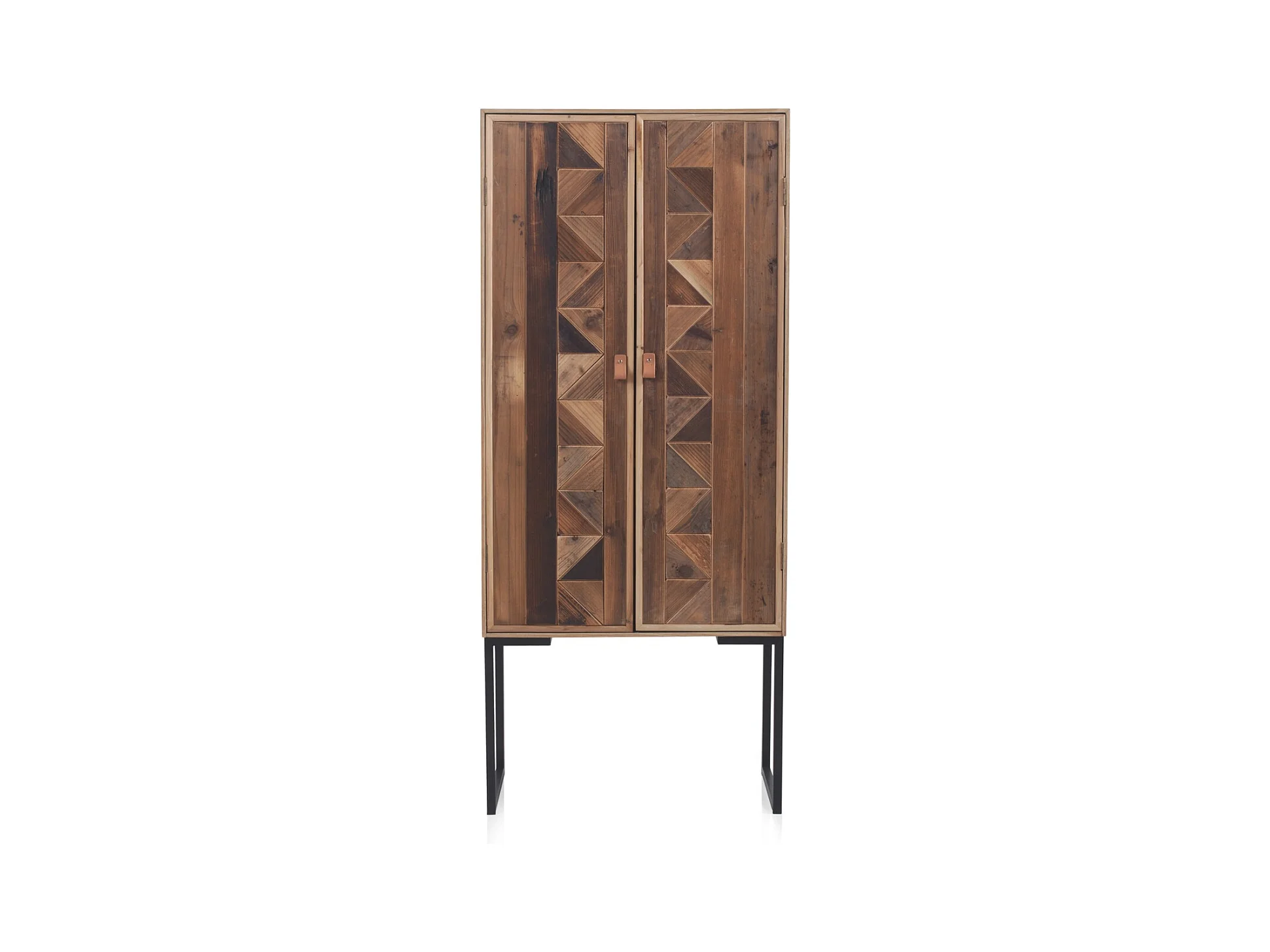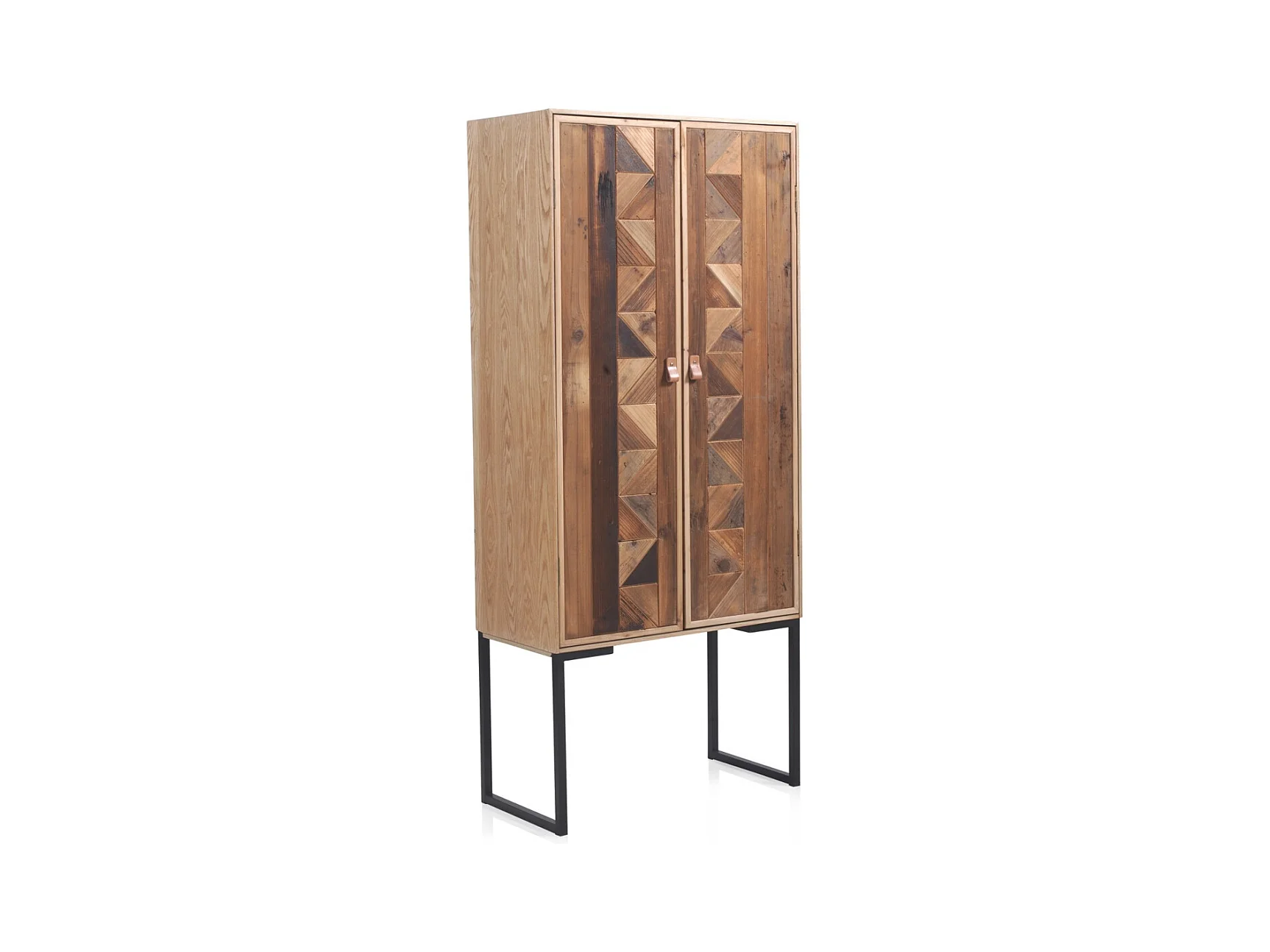 Eschenfurnierte Vitrine mit Fronten aus recyceltem Holz