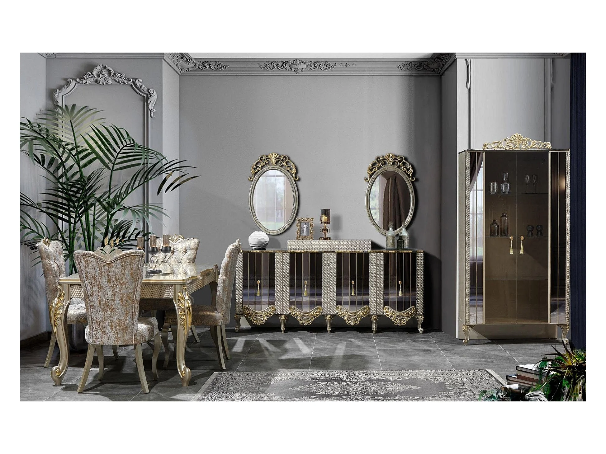 Essecke Luxus Essgruppe Esszimmer Esstisch Stühle Beige Set Holz 5tlg
