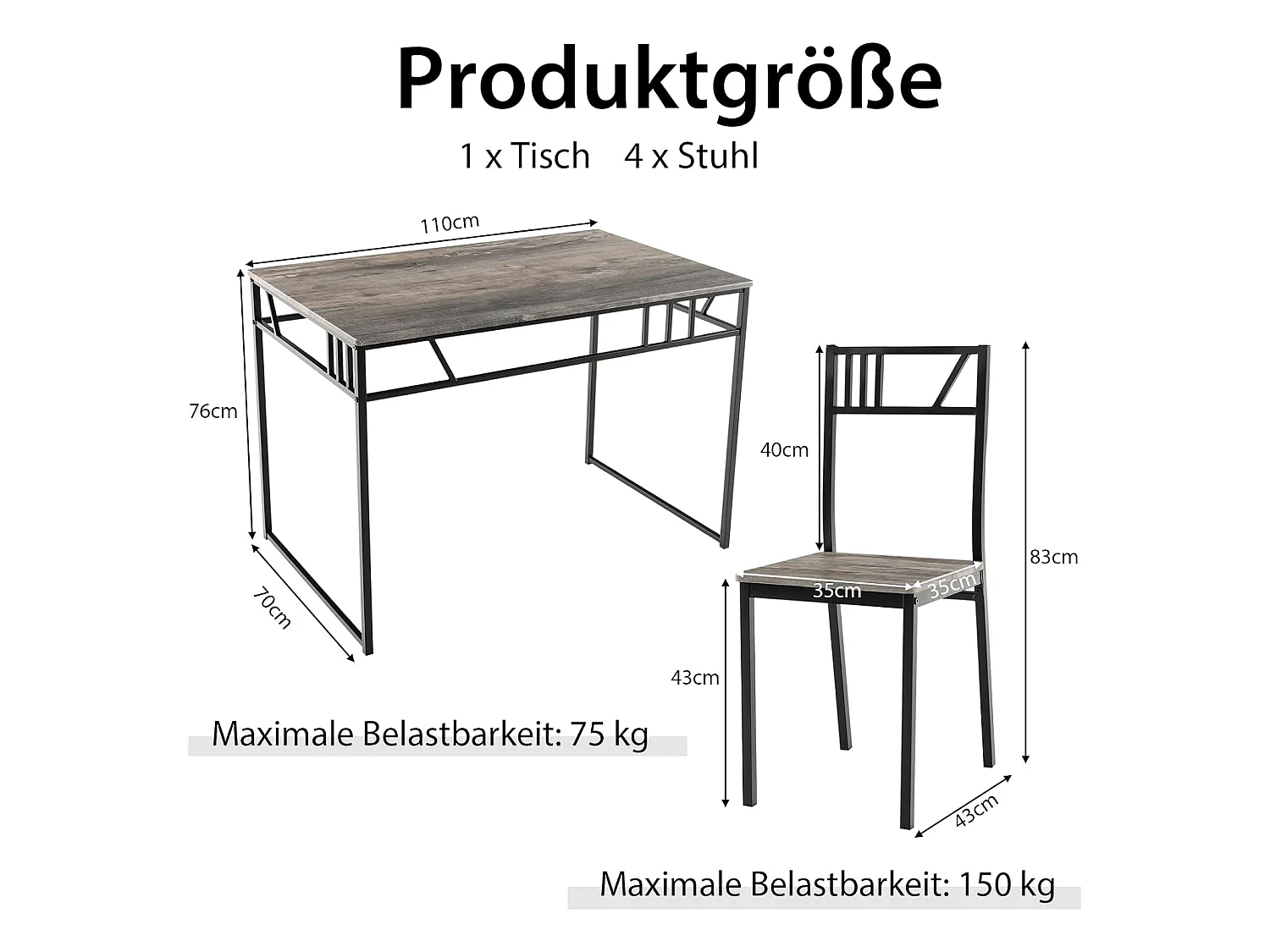 Essgruppe für 4 Personen(5-teilig)