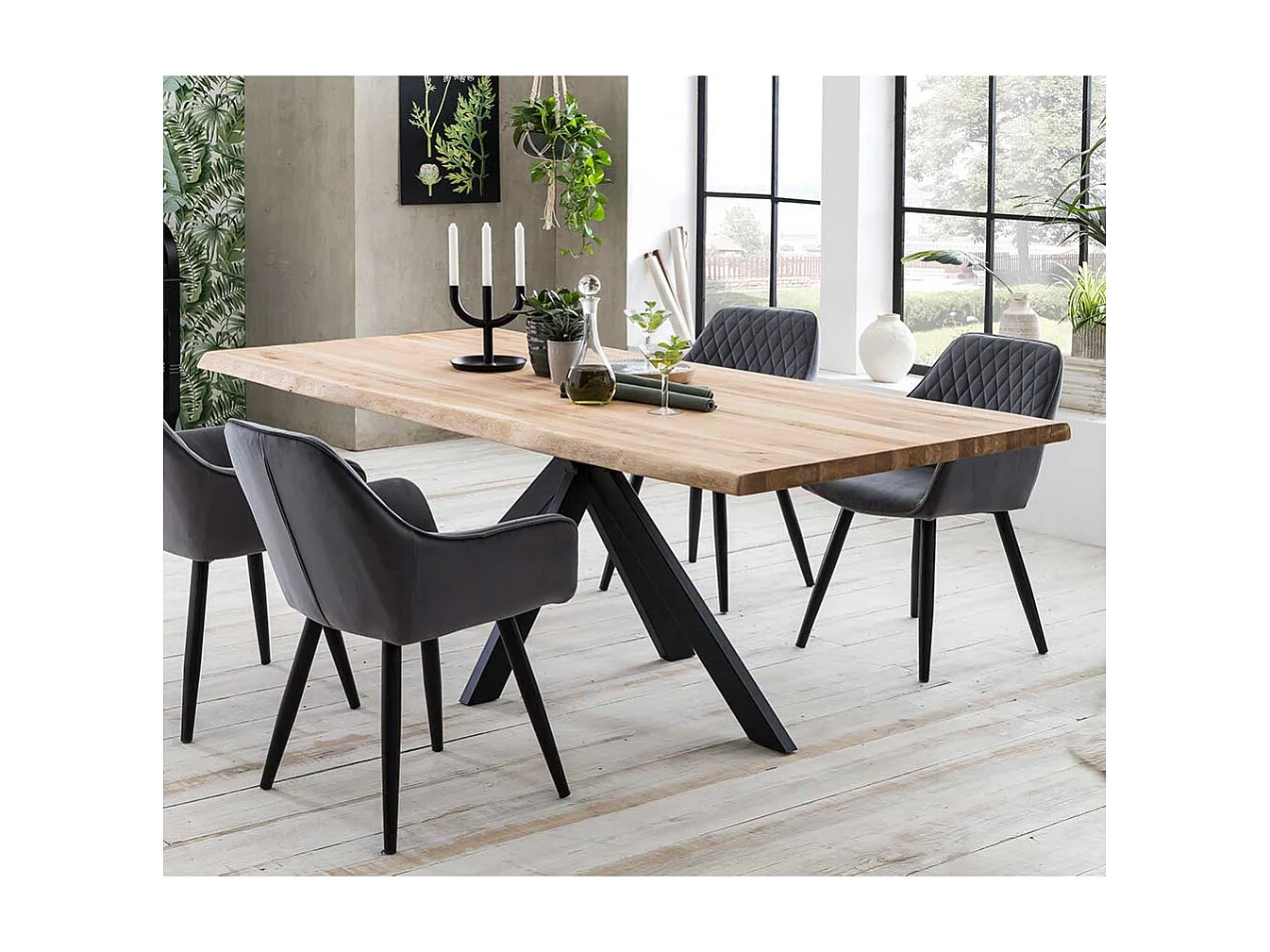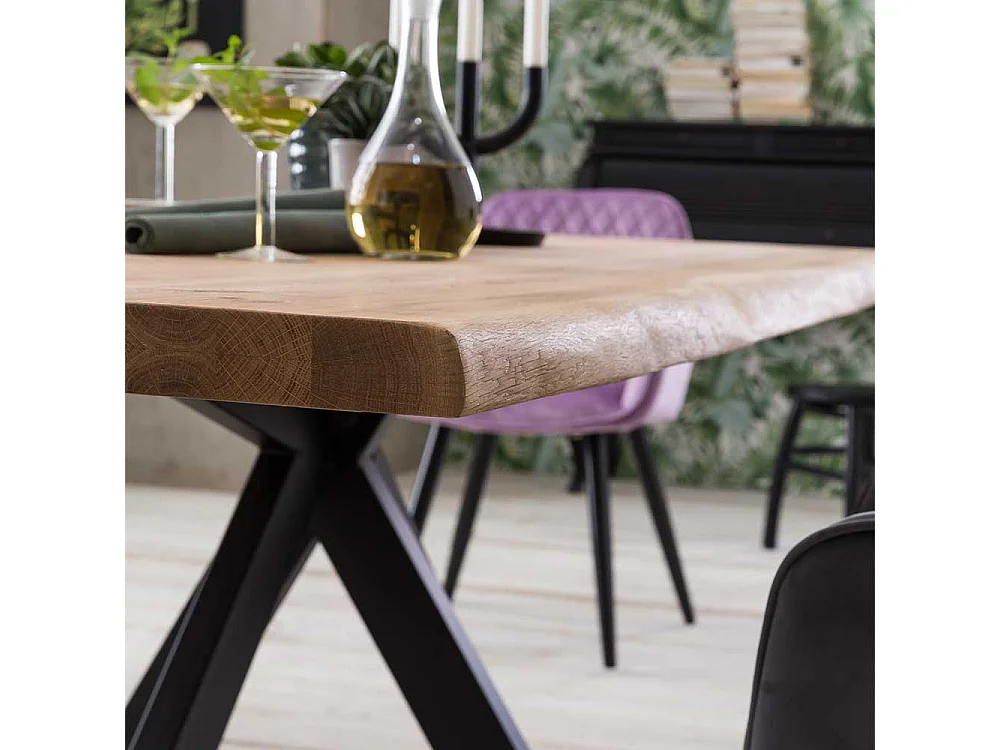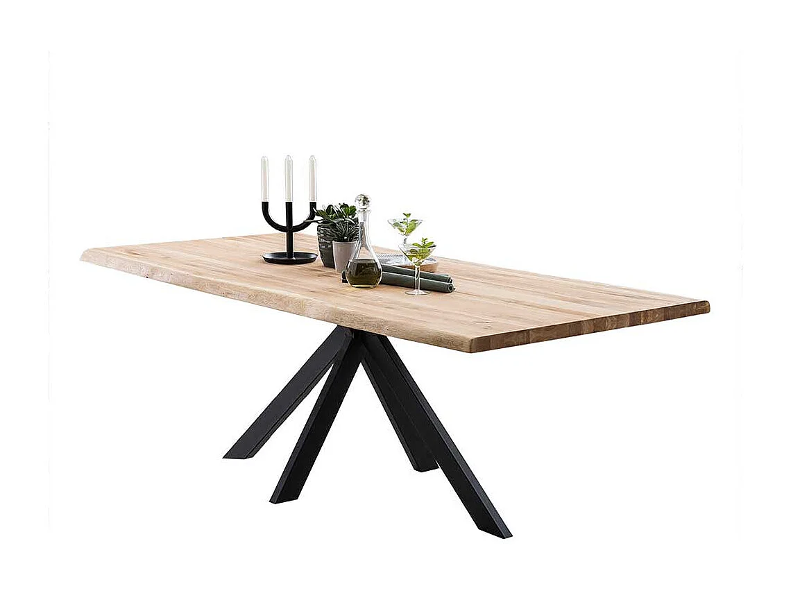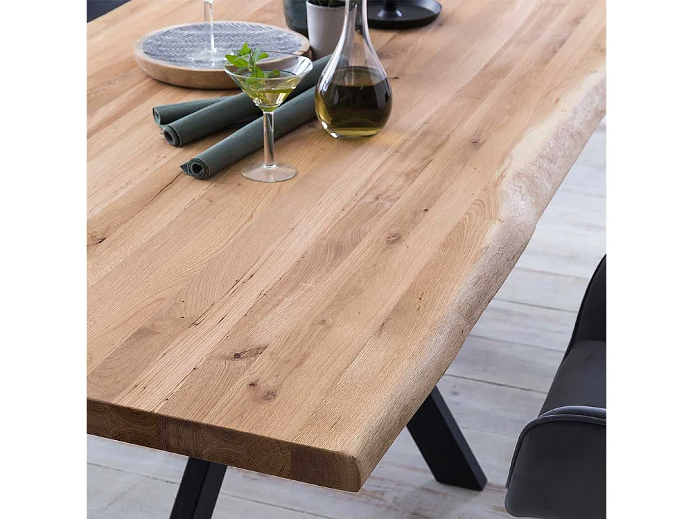 Esstisch aus Eiche Massivholz 4-Fußgestell aus schwarzem Metall