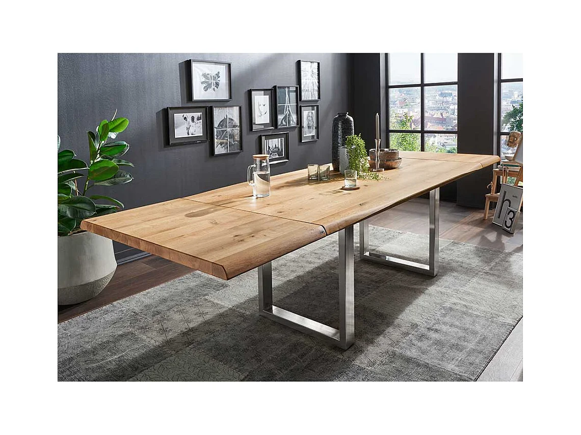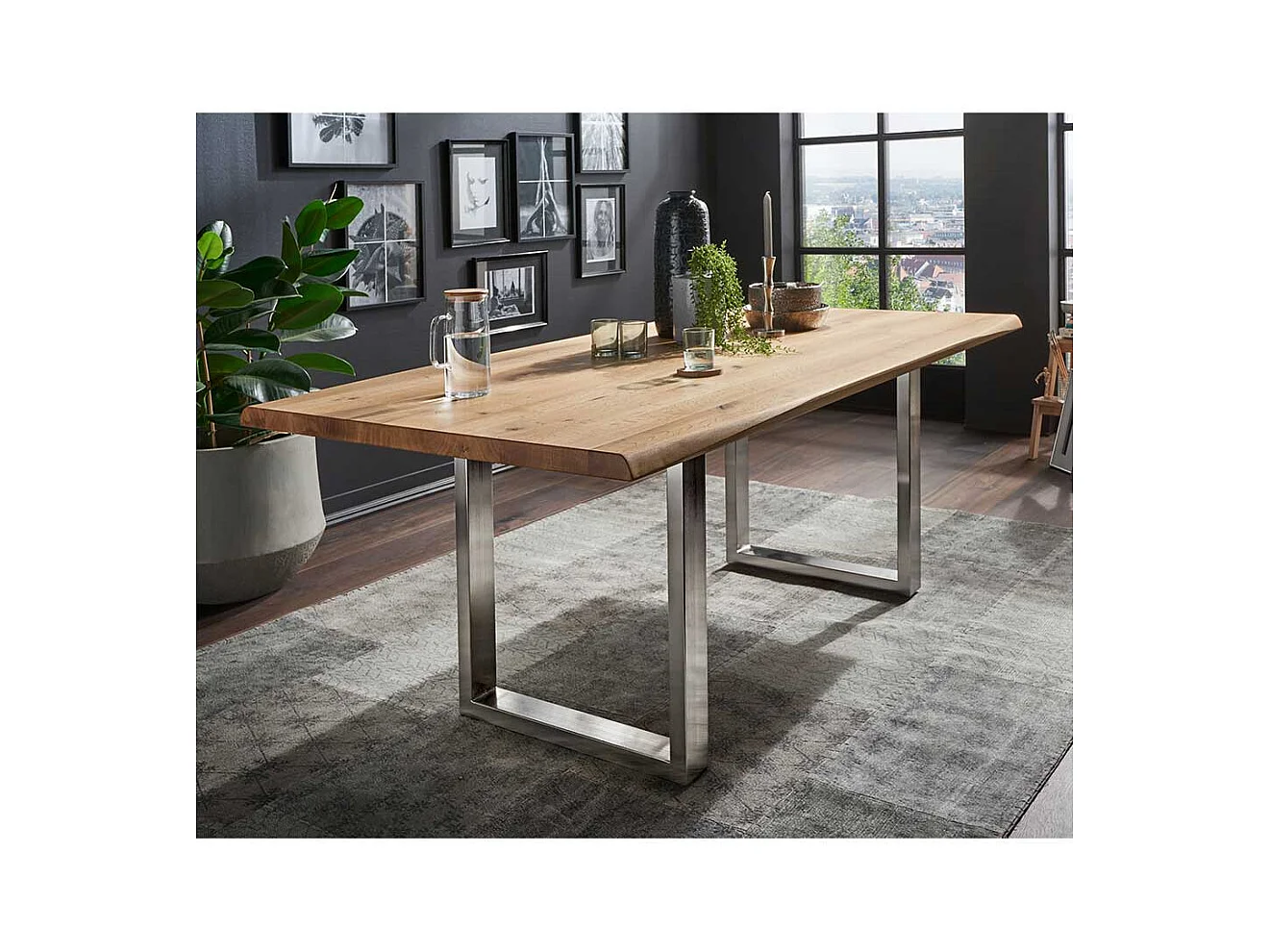 Esstisch aus Wildeiche Massivholz und Stahl Loft Design