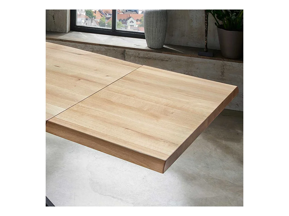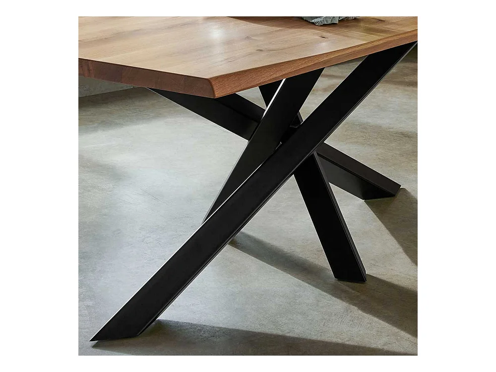 Esstisch aus Wildeiche Massivholz und Stahl Mikado Fußgestell