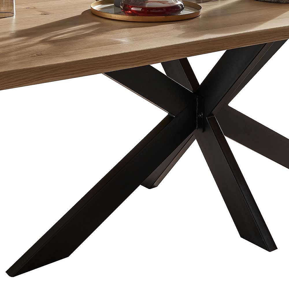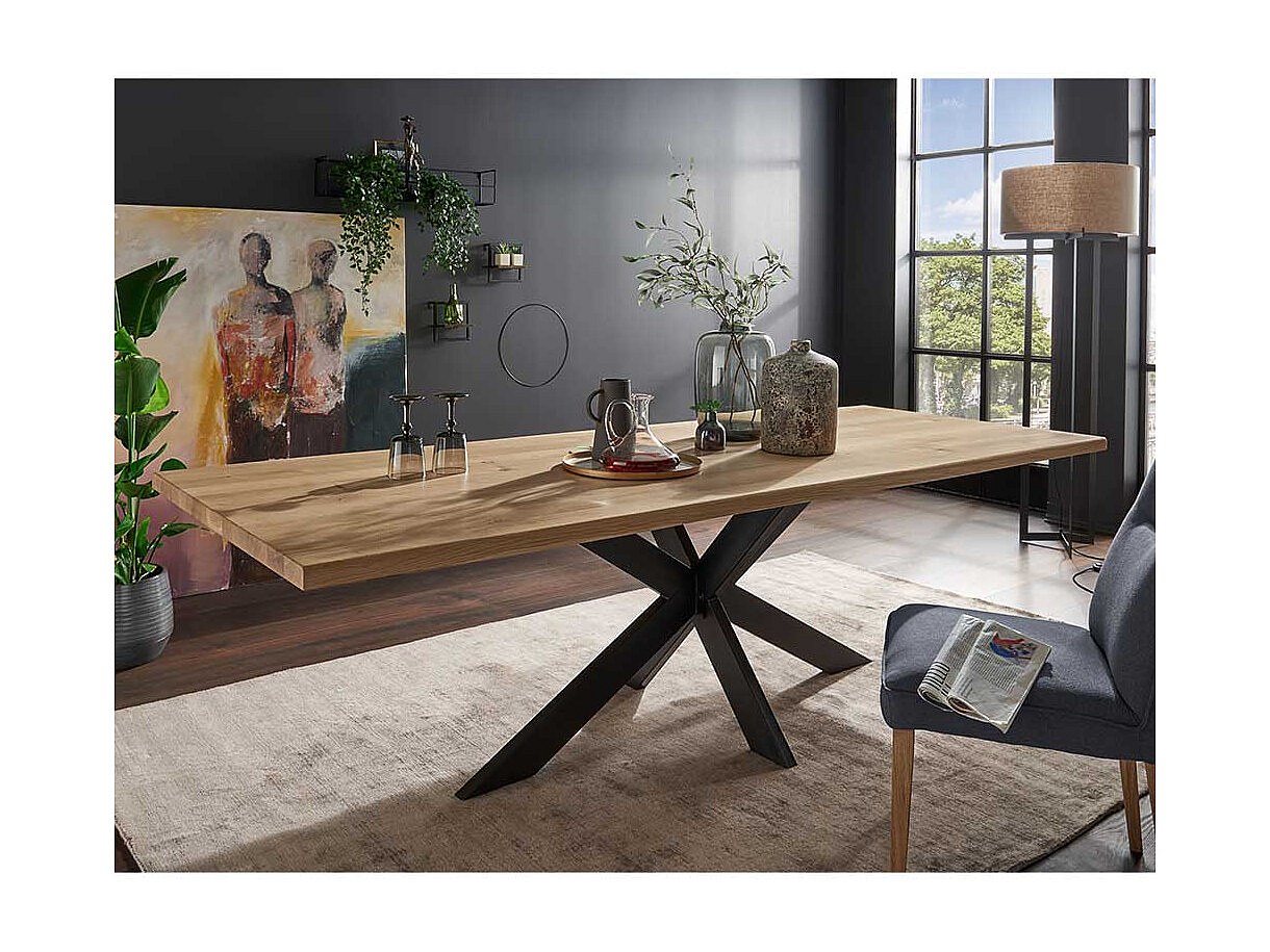 Esstisch aus Wildeiche Massivholz und Stahl Spider Gestell