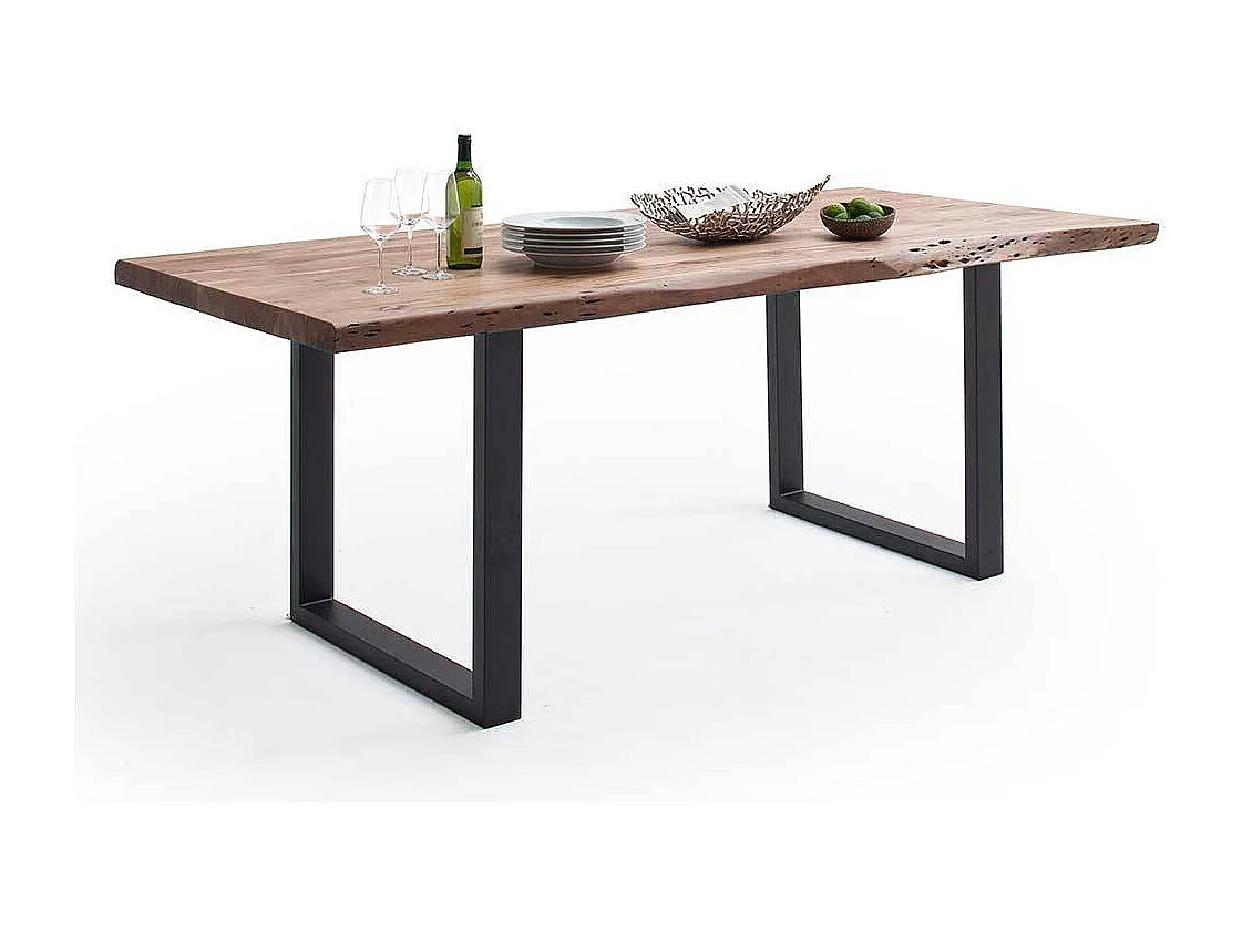 Esstisch Baumkantentisch aus Akazie Massivholz mit Bügelgestell