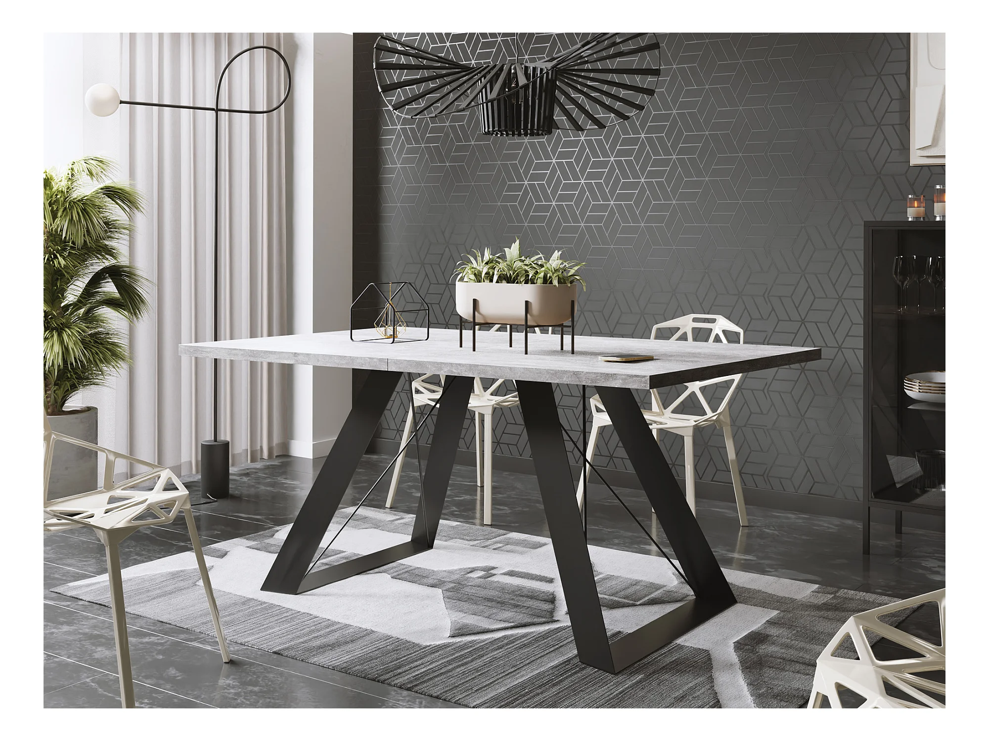 Esstisch Colter Schwarz im Modern Still, Rechteckig Tisch - Ausziehbar von 140 cm bis 240 cm, Pulverbeschichtete Weiße Metallbeine - 140 x 80 cm - Beton Grau