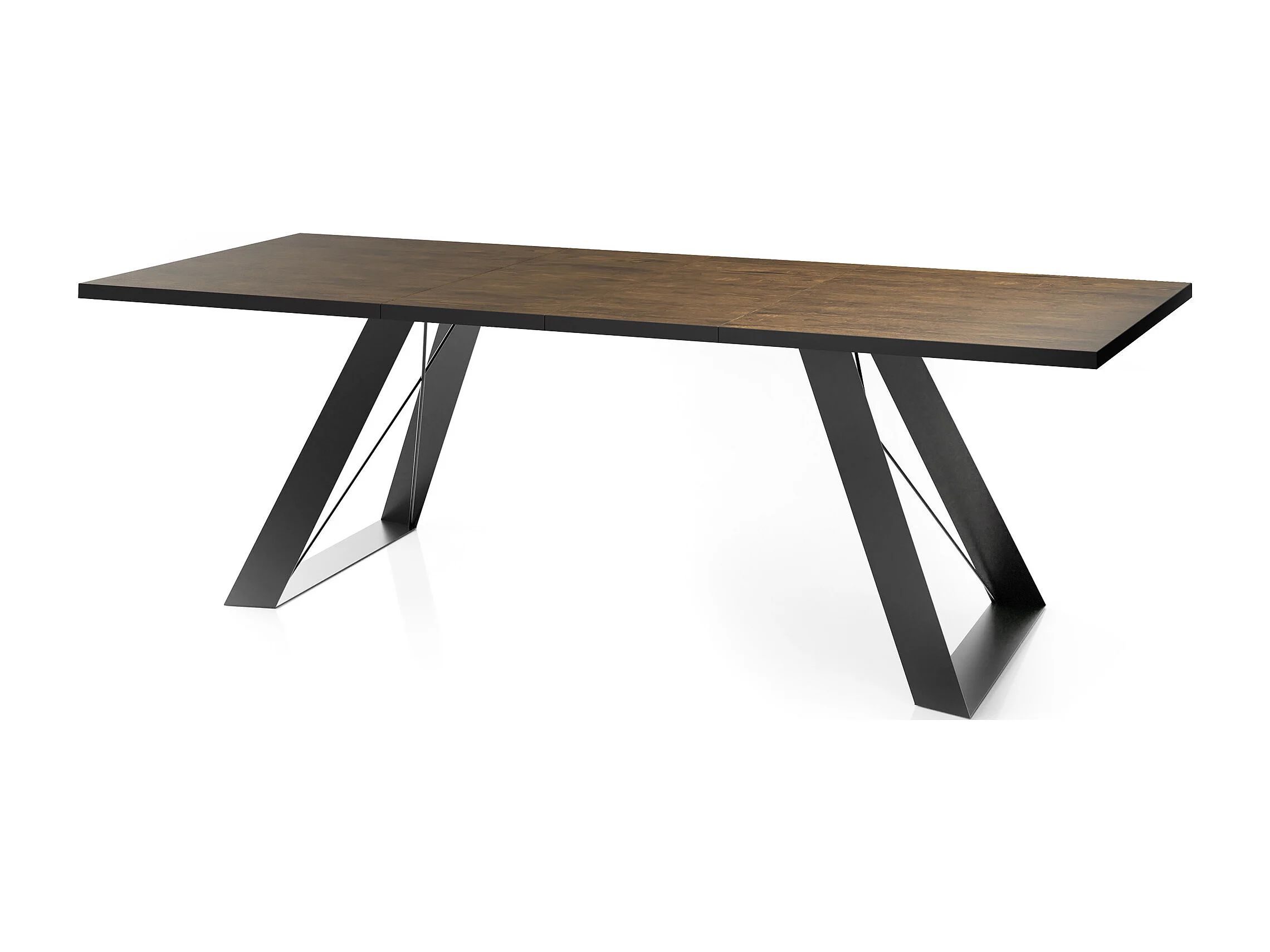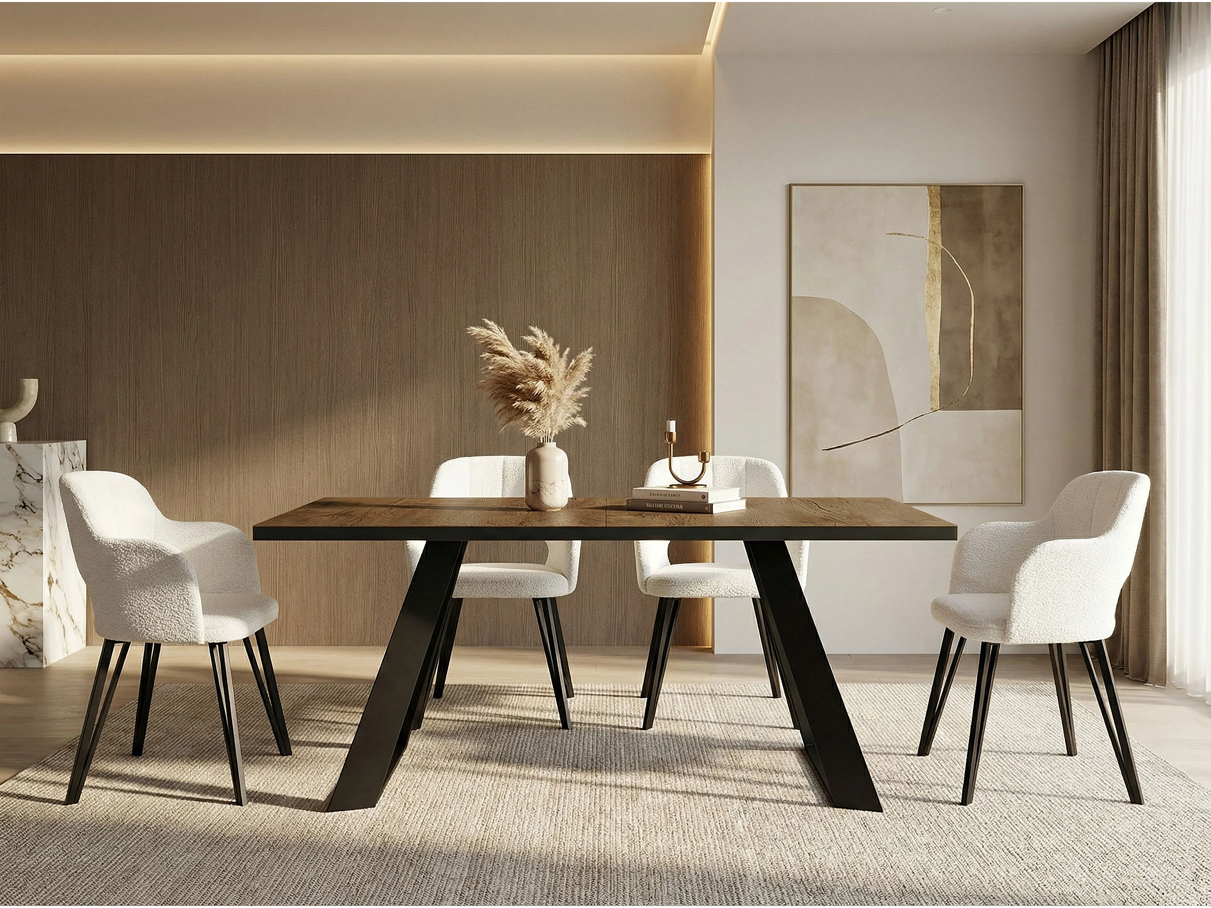 Esstisch Colter Schwarz im Modern Still, Rechteckig Tisch - Ausziehbar von 140 cm bis 240 cm, Pulverbeschichtete Weiße Metallbeine - 140 x 80 cm - Lefkas Eiche