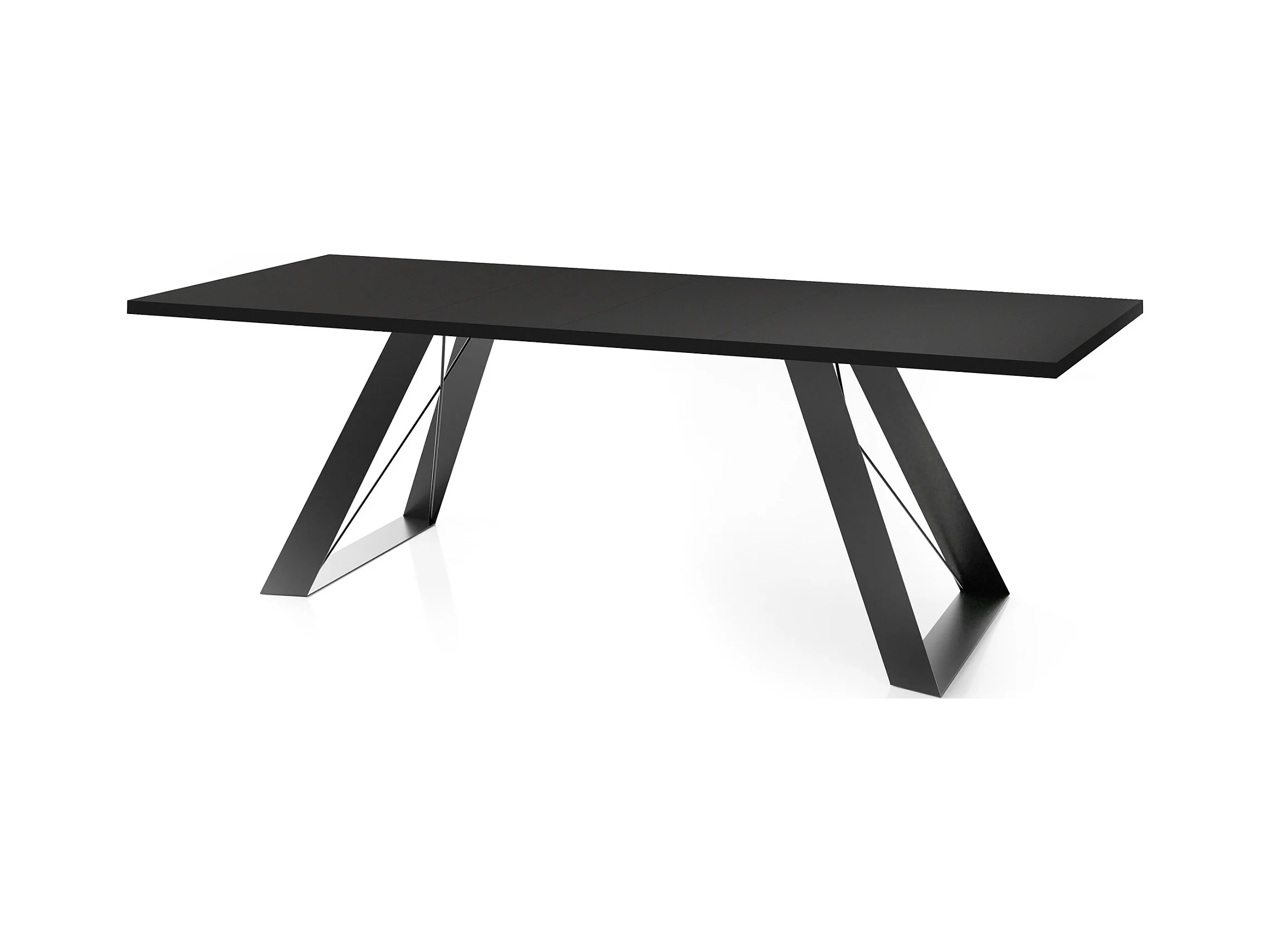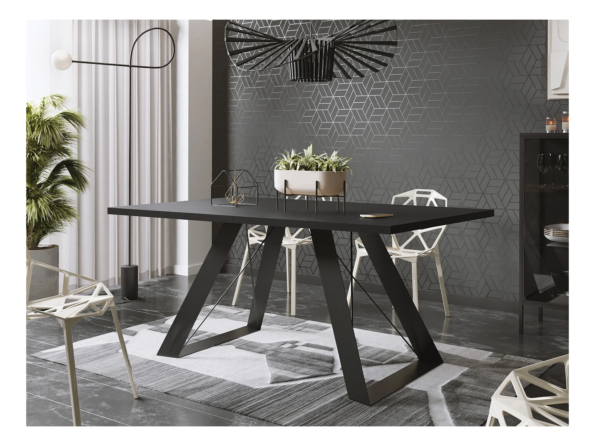 Esstisch Colter Schwarz im Modern Still, Rechteckig Tisch - Ausziehbar von 140 cm bis 240 cm, Pulverbeschichtete Weiße Metallbeine - 140 x 80 cm - Schwarz