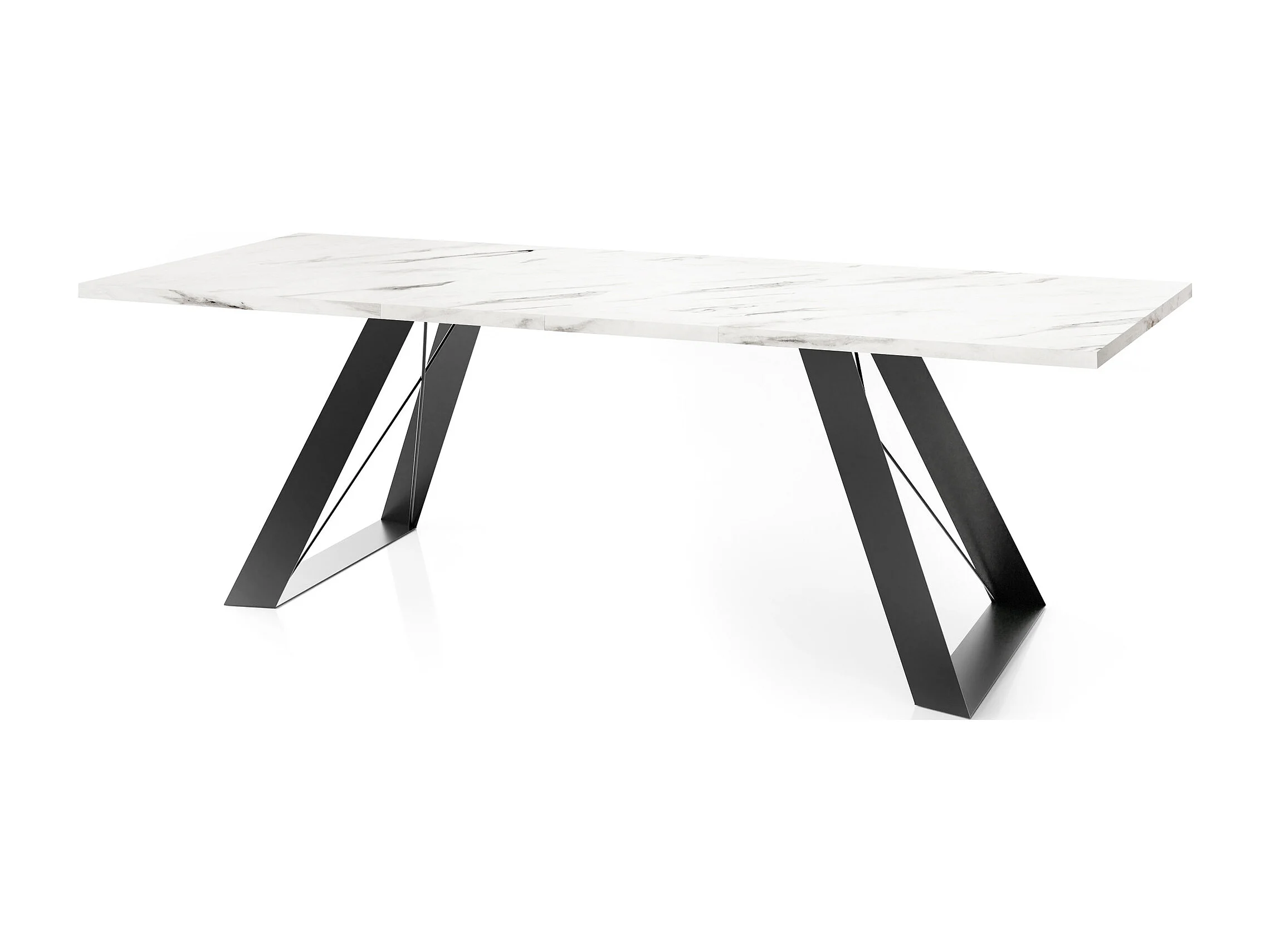 Esstisch Colter Schwarz im Modernen Still, Rechteckig Tisch - Ausziehbar von 140 cm bis 240 cm, Pulverbeschichtete Weiße Metallbeine - 140 x 80 cm - Marmor Weiß