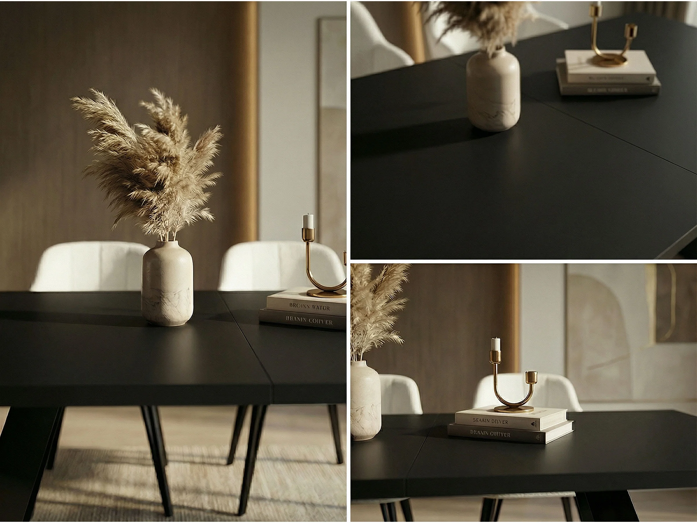 Esstisch Colter Schwarz im Modern Still, Rechteckig Tisch - Ausziehbar von 160 cm bis 260 cm, Pulverbeschichtete Weiße Metallbeine - 160 x 80 cm - Schwarz