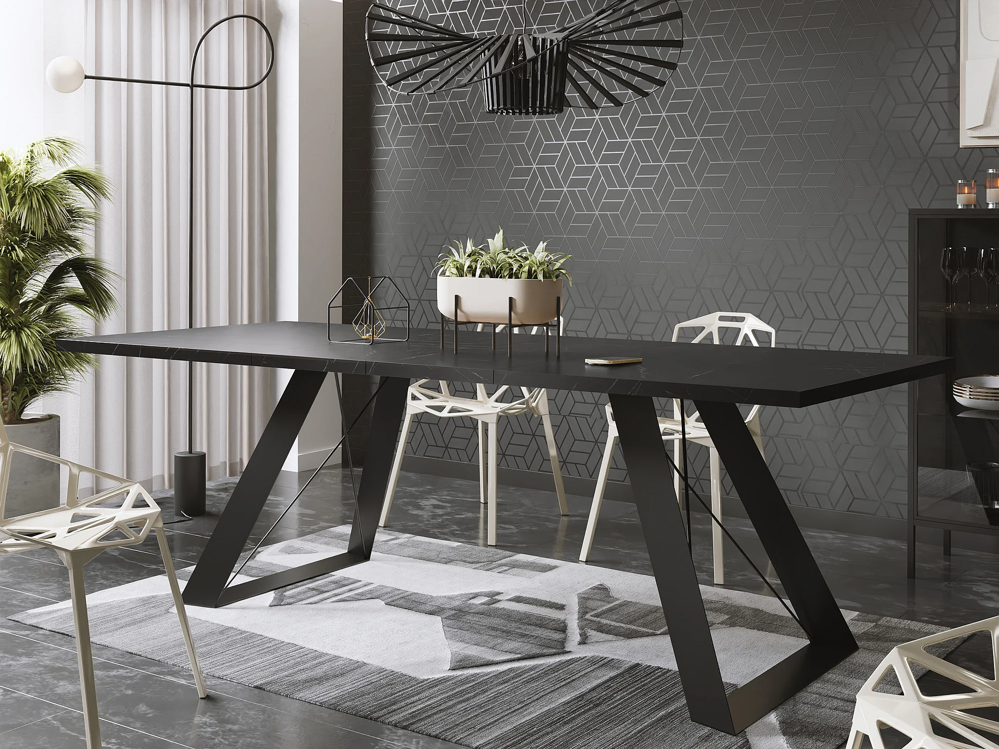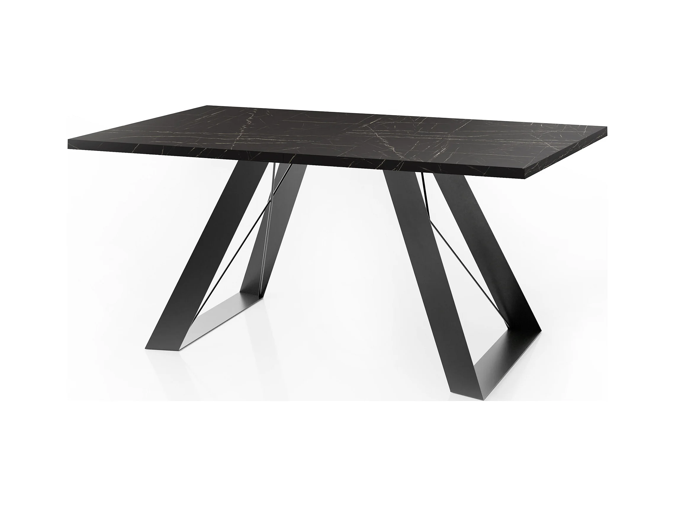 Esstisch Colter Schwarz im Modernen Still, Rechteckig Tisch - Ausziehbar von 160 cm bis 260 cm, Pulverbeschichtete Weiße Metallbeine - 160 x 80 cm - Marmor Schwarz