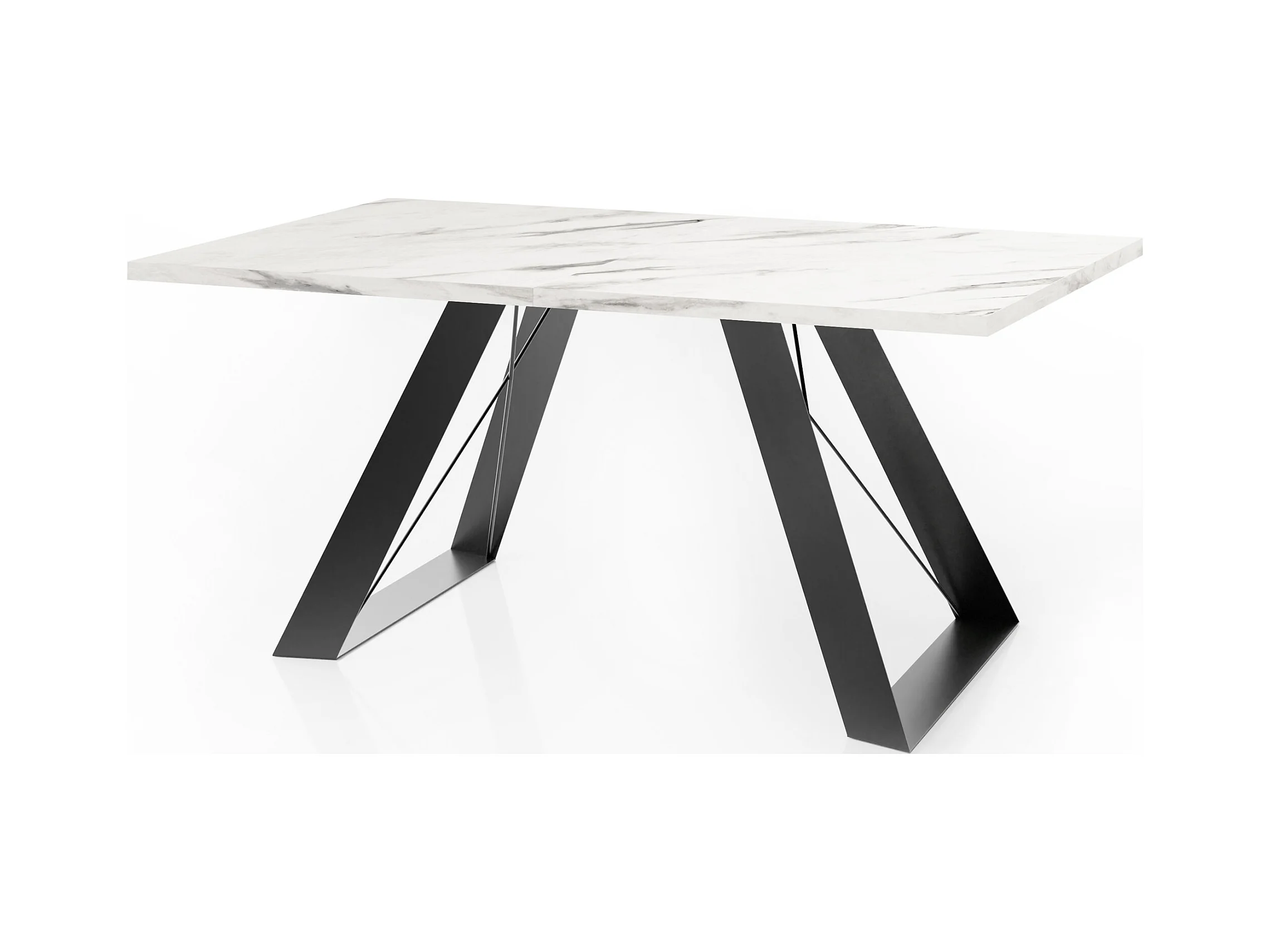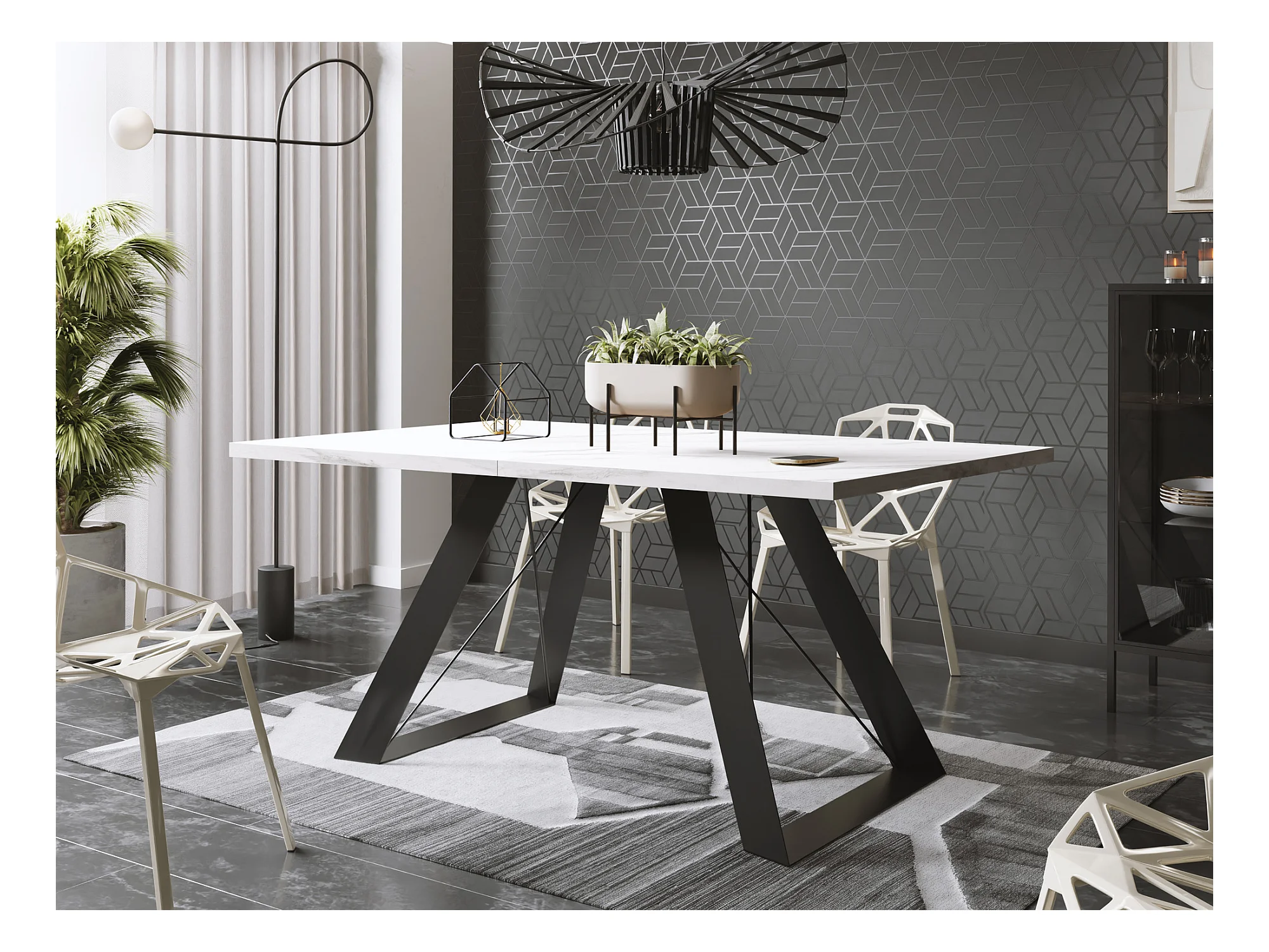 Esstisch Colter Schwarz im Modernen Still, Rechteckig Tisch - Ausziehbar von 160 cm bis 260 cm, Pulverbeschichtete Weiße Metallbeine - 160 x 80 cm - Marmor Weiß