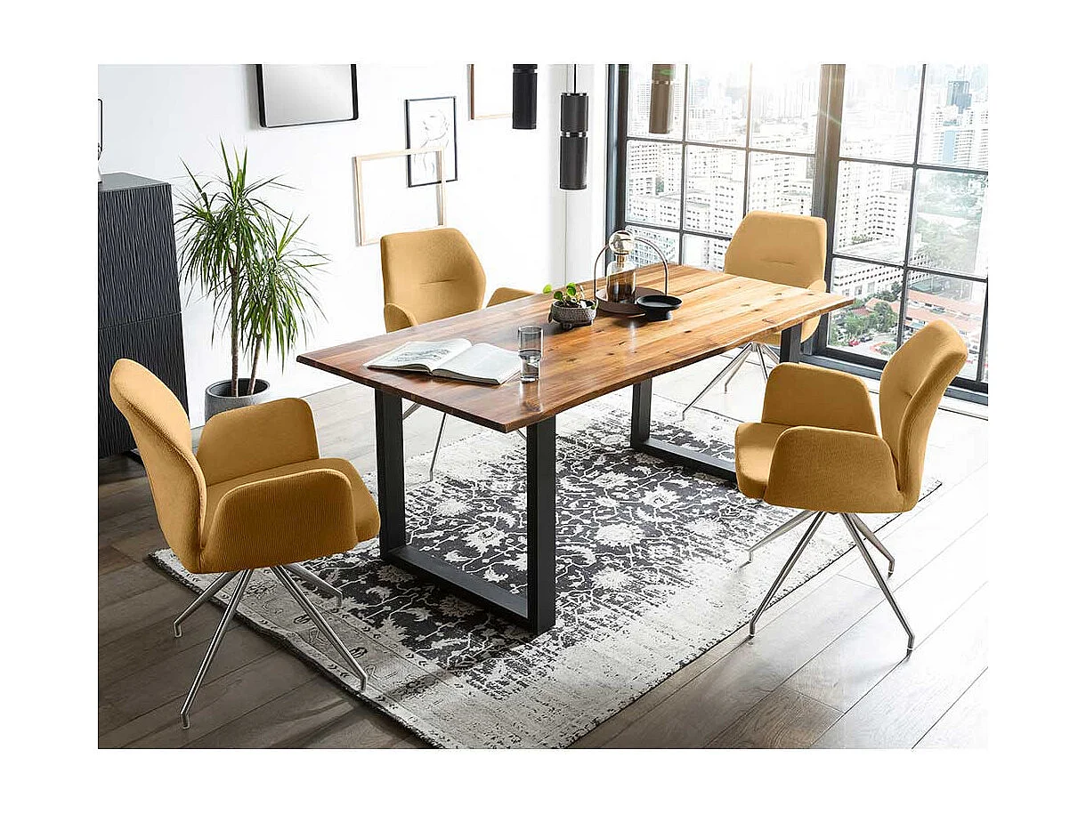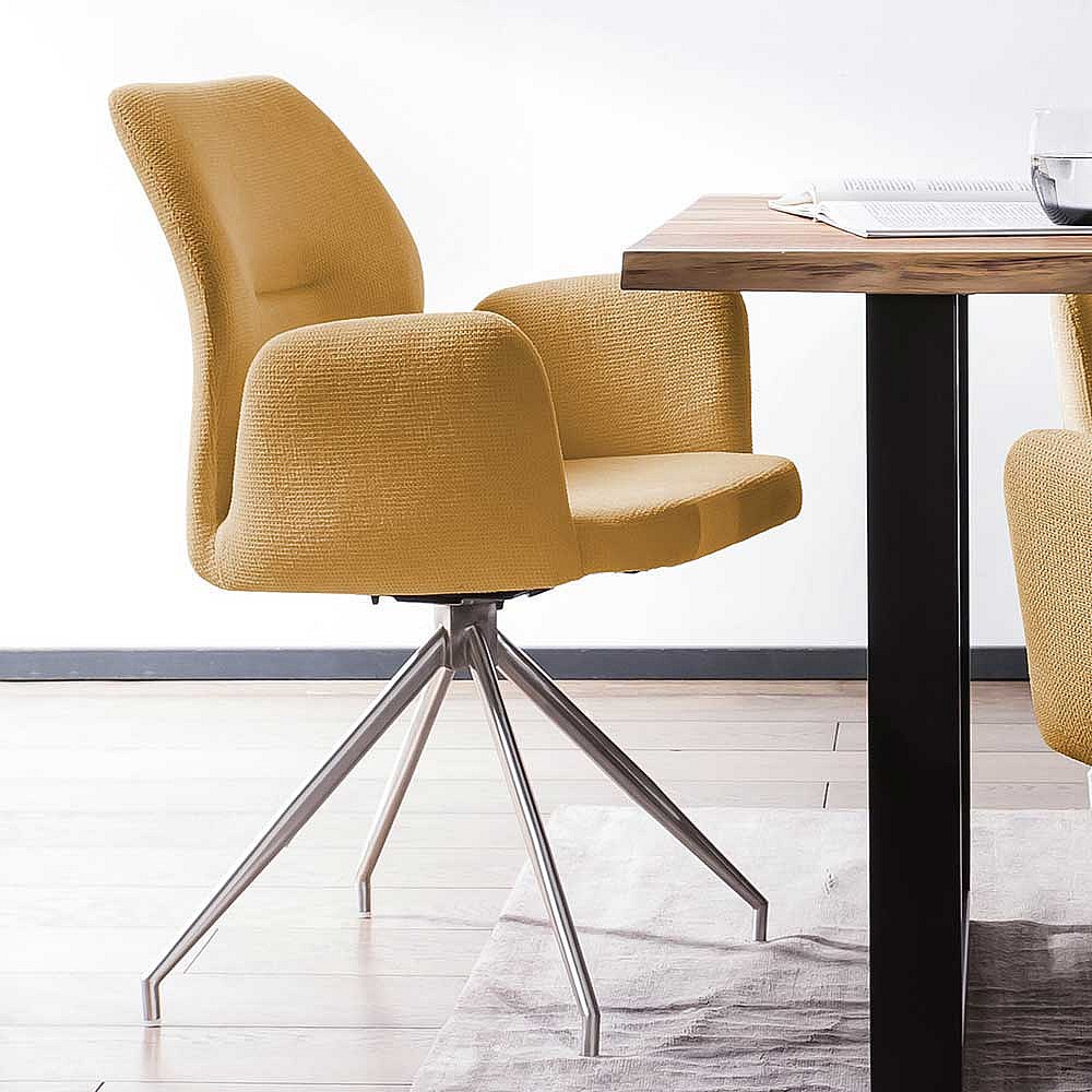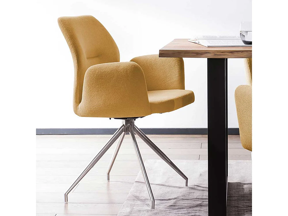 Esstisch Drehstuhl in Gelb und Silber Armlehnen
