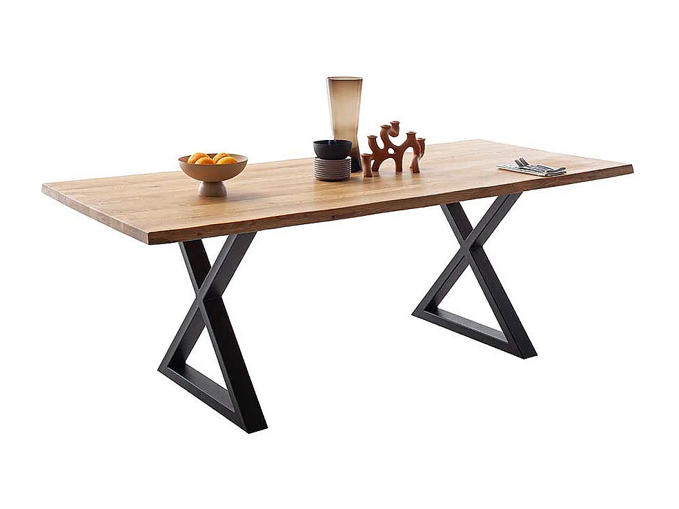 Esstisch Echtholztisch in Wildeichefarben mit X Gestell