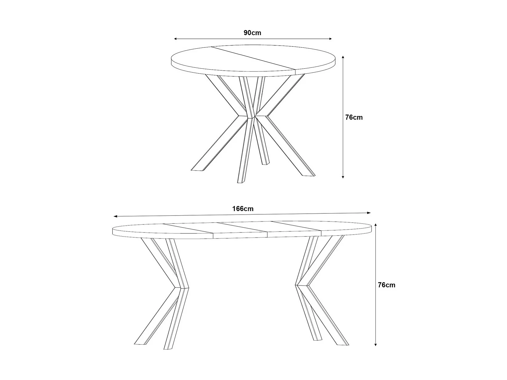 ESSTISCH Edder Eiche Artisan / Schwarz 90/166 / 90 / 76cm