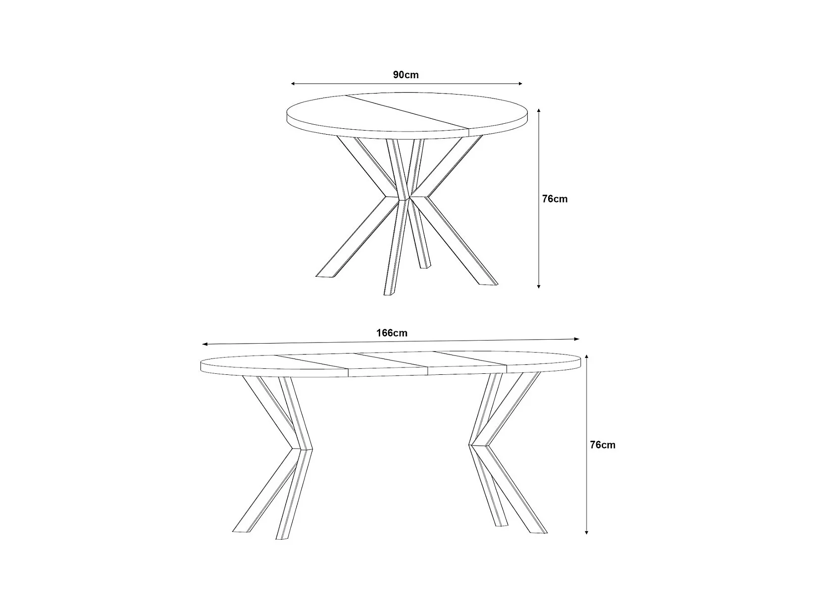 ESSTISCH Edder Sonoma Eiche / Schwarz 90/166 / 90 / 76cm