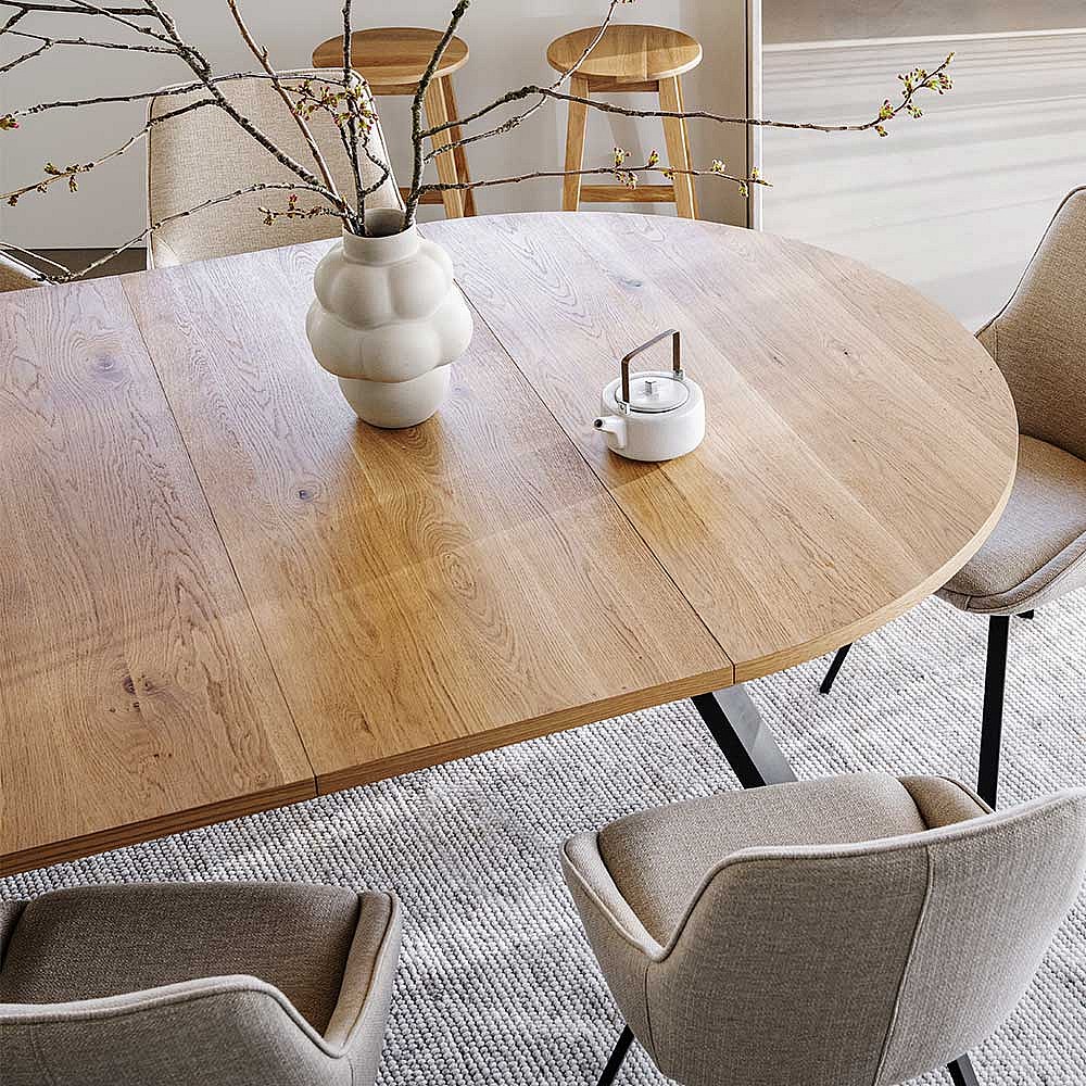 Esstisch Eiche Furnier geölt mit Vierfußgestell Metall