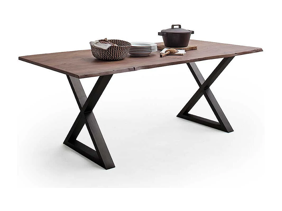 Esstisch Esszimmertisch mit natürlicher Baumkante und X Gestell