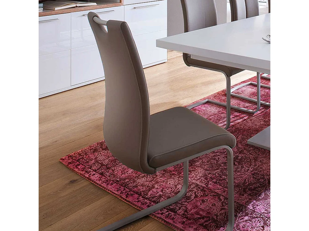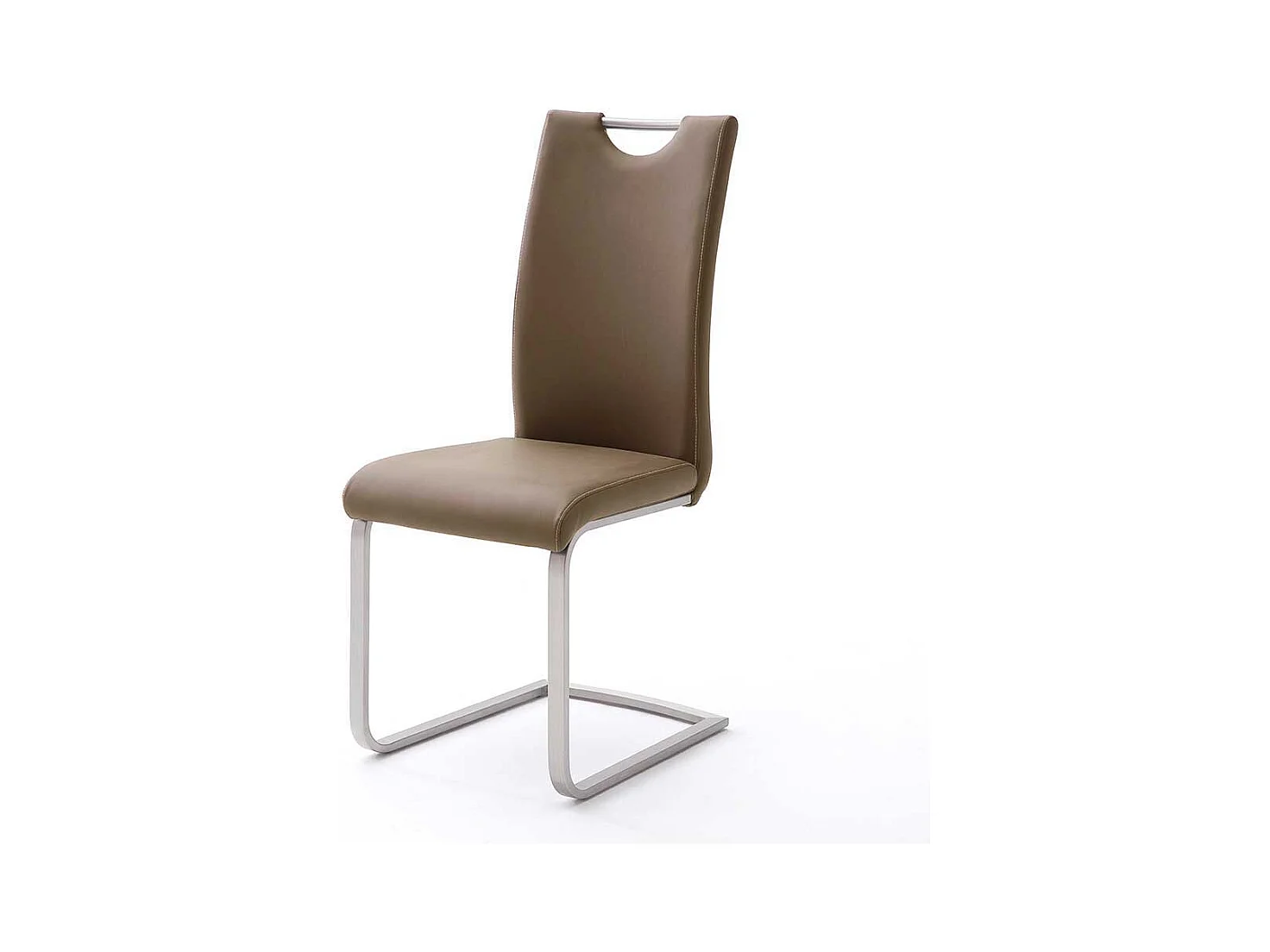 Esstisch Freischwinger in Hellbraun Kunstleder Edelstahl (4er Set)