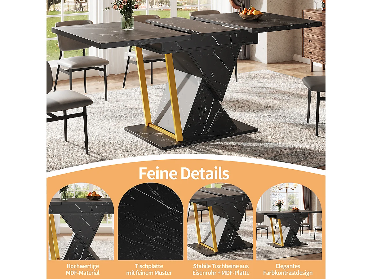 Esstisch für bis zu 6 Personen Ausziehbarer Küchentisch aus Holz Lässt sich auf 140 cm Länge ausziehen Esszimmertisch 110 x 80 x 76 cm Schwarz