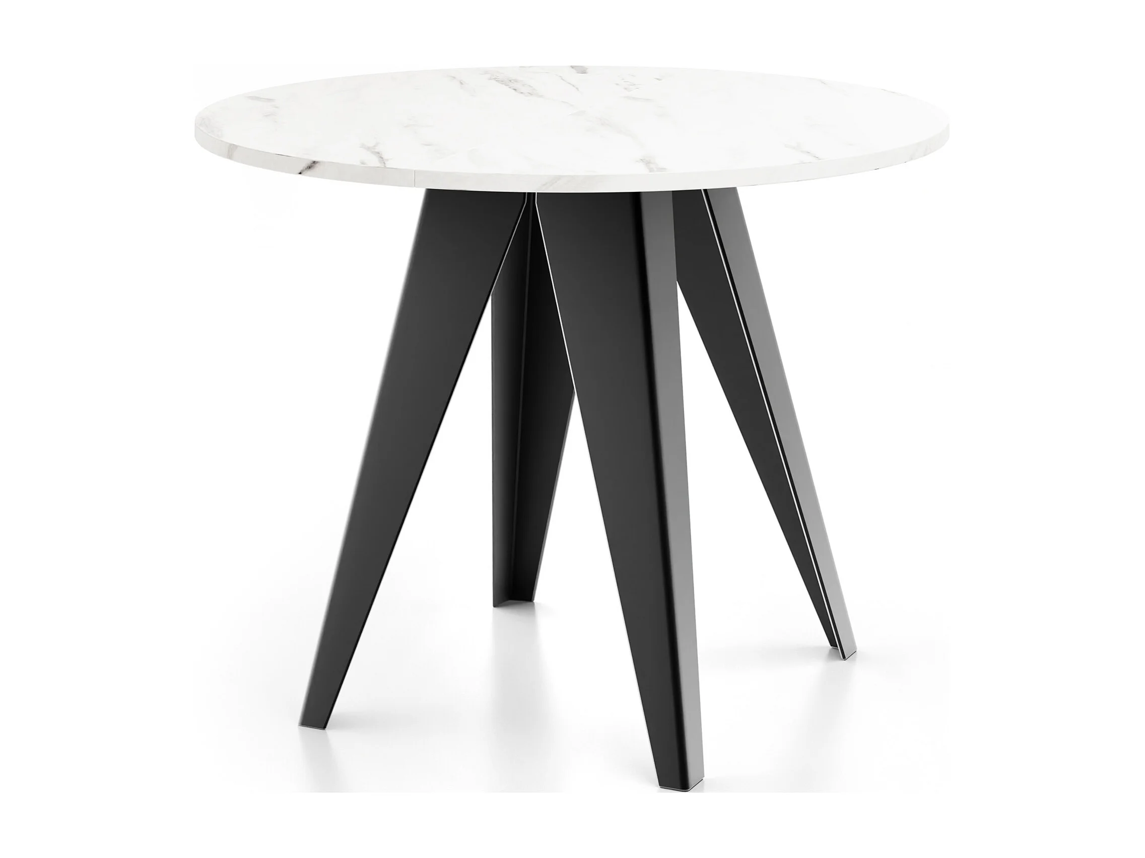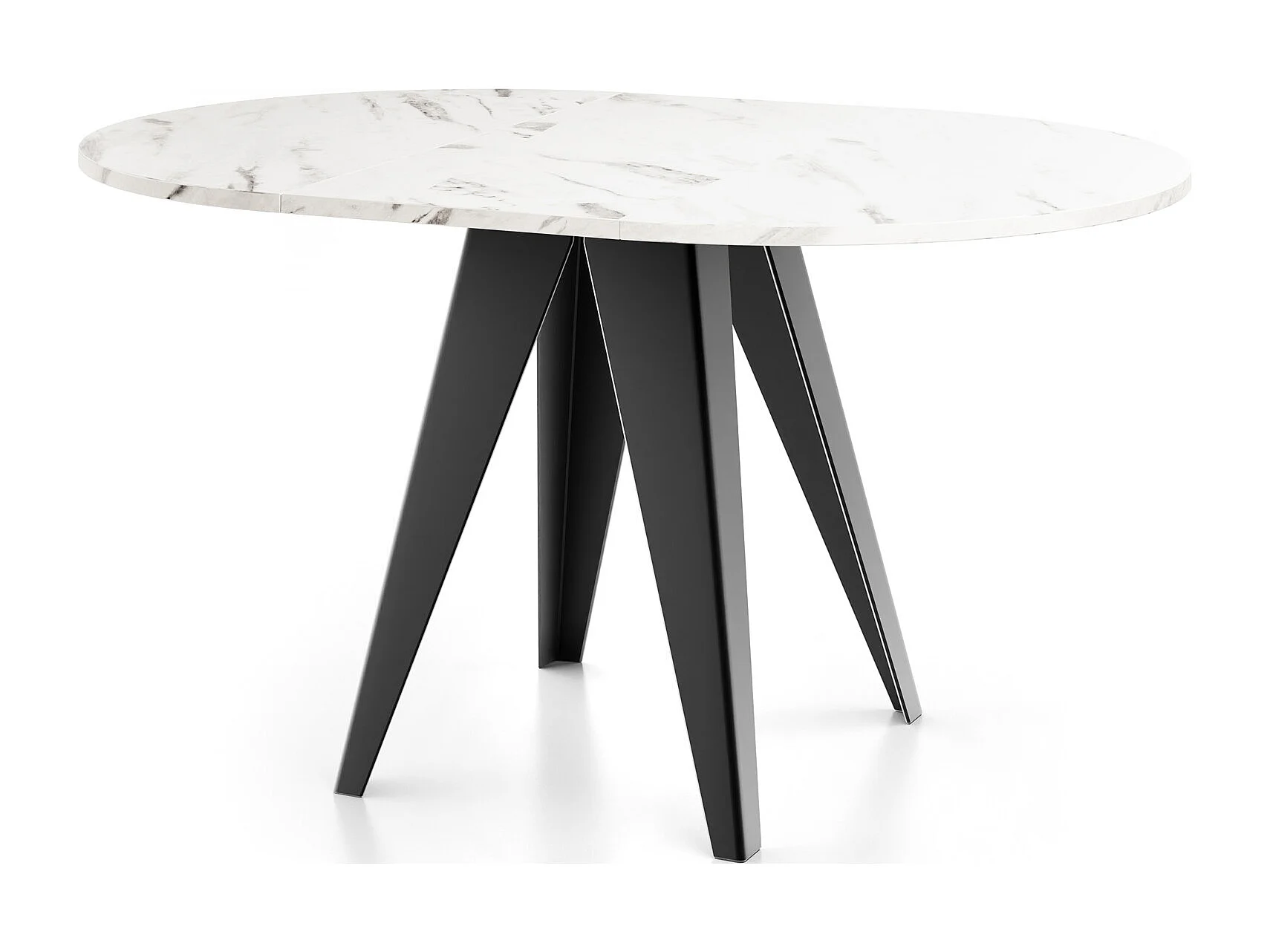 Esstisch Glory im Industriestil - Modern, Rund - Ausziehbar von 100 cm bis 140 cm, Pulverbeschichtete Metallbeine - Marmor Weiß