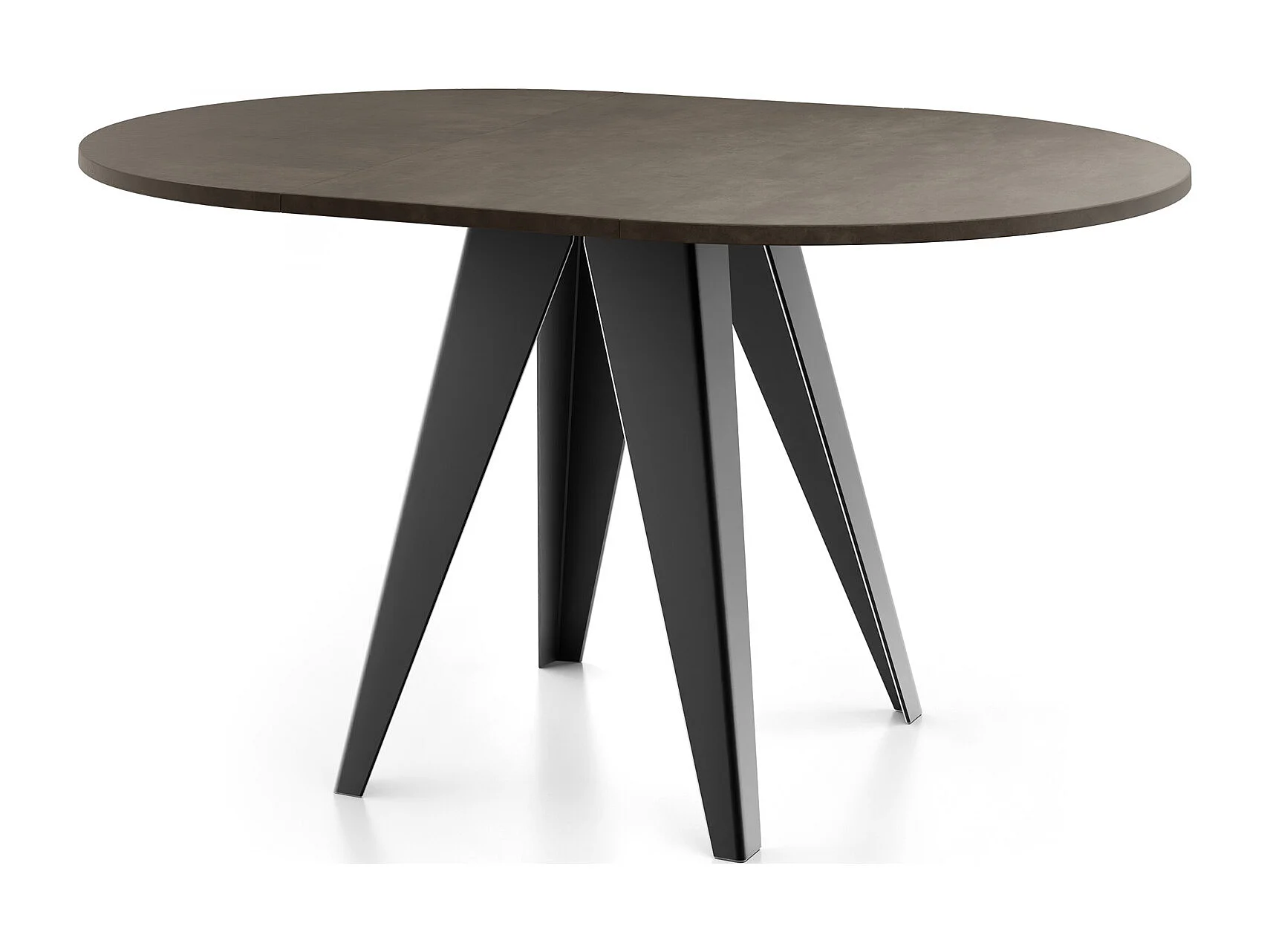 Esstisch Glory im Industriestil - Modern, Rund - Ausziehbar von 90 cm bis 130 cm, mit Pulverbeschichteten Metallbeinen, Tisch für Kleine Küche - Chicago Beton Grau