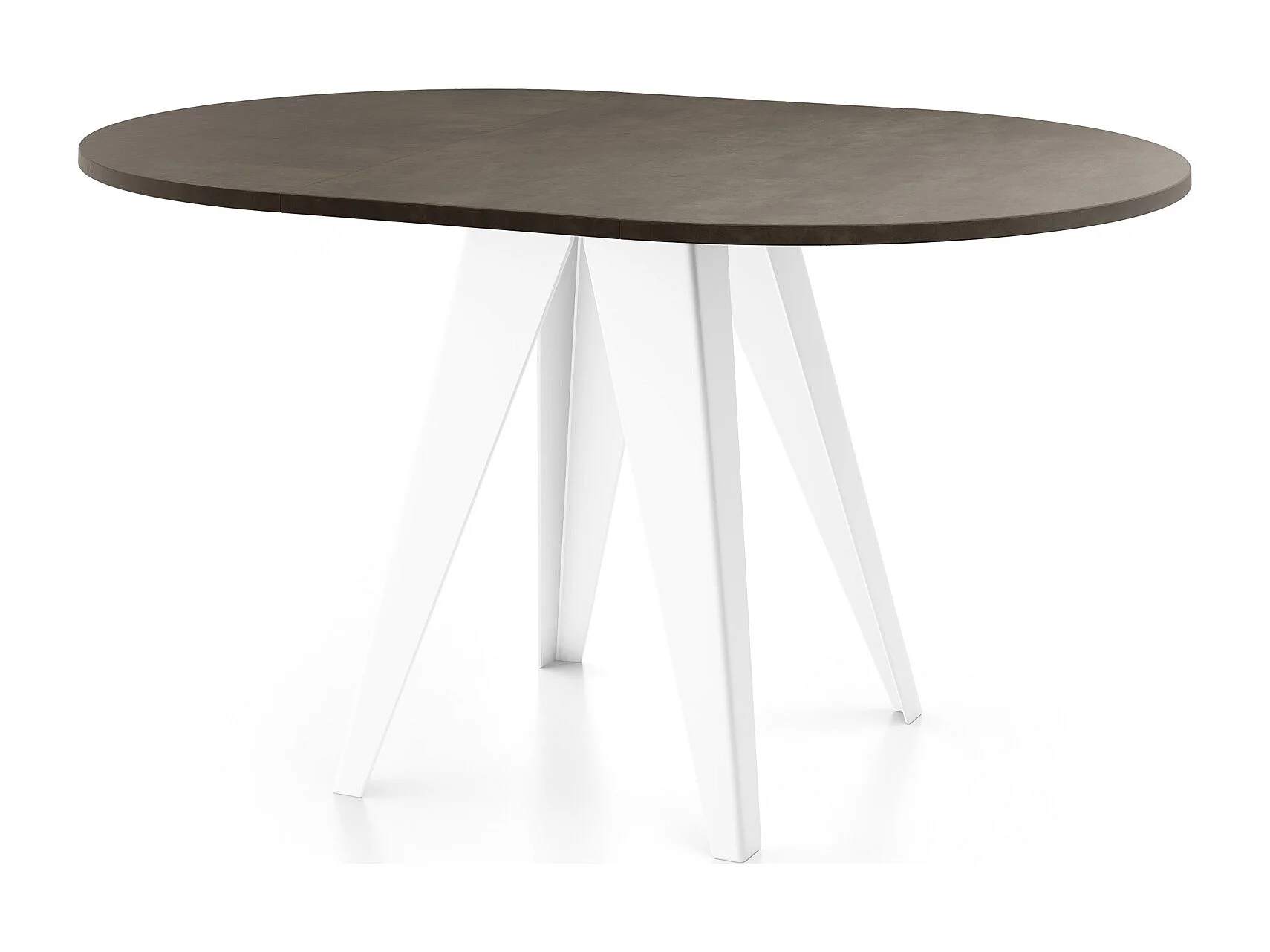 Esstisch Glory Weiß im Industriestil - Rund - Ausziehbar von 90 cm bis 130 cm, mit Pulverbeschichteten Metallbeinen Tisch für Kleine Küche - Chicago Beton Grau