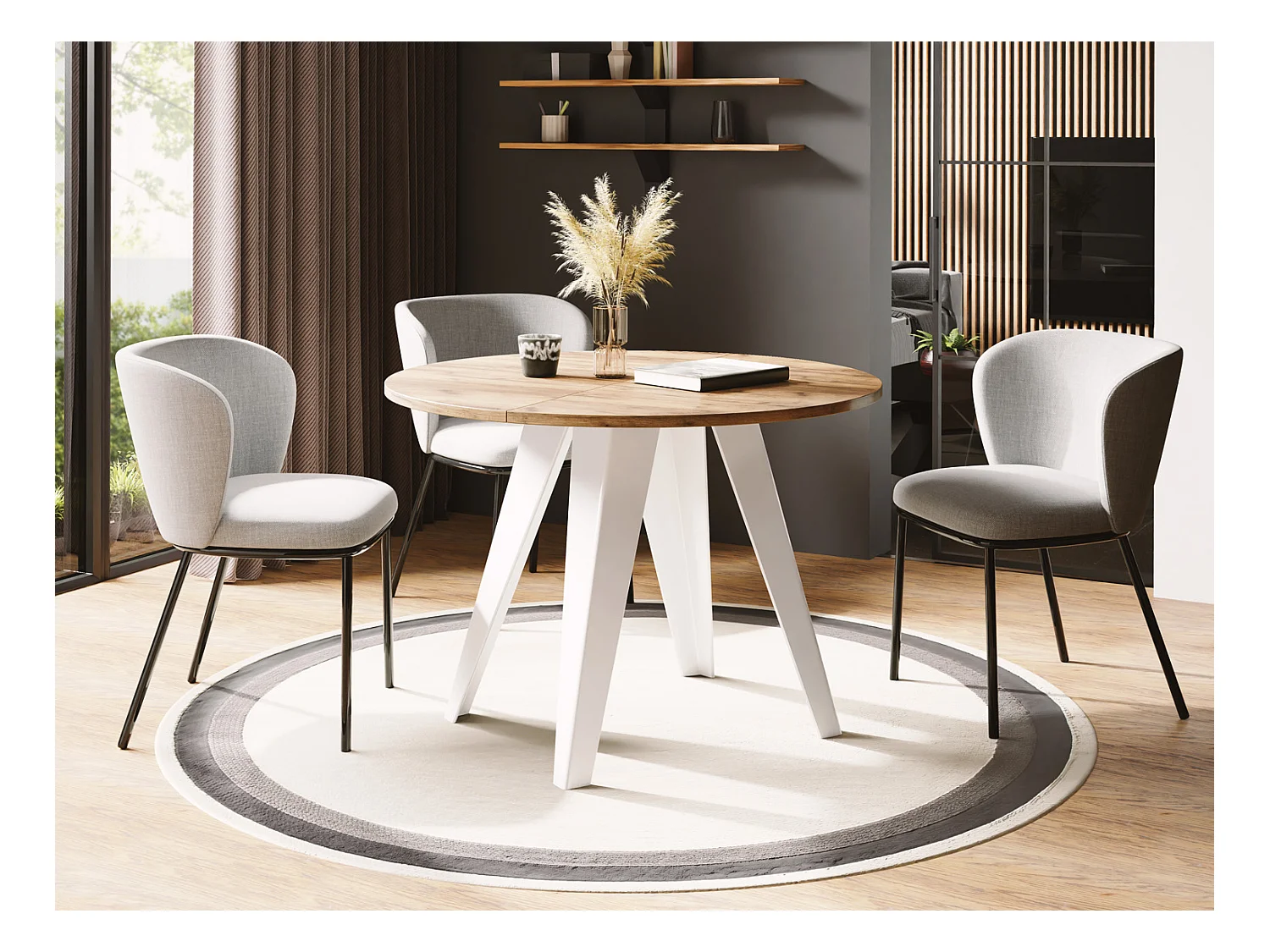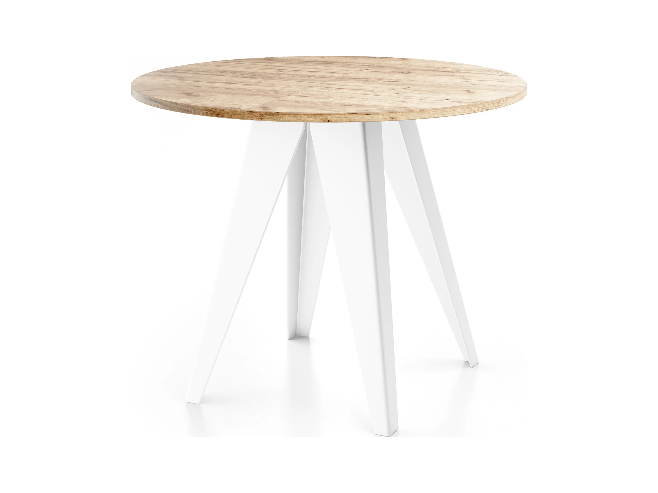 Esstisch Glory Weiß im Industriestil - Modern, Rund - Ausziehbar von 90 cm bis 130 cm, mit Pulverbeschichteten Metallbeinen, Tisch für Kleine Küche - Craft Eiche