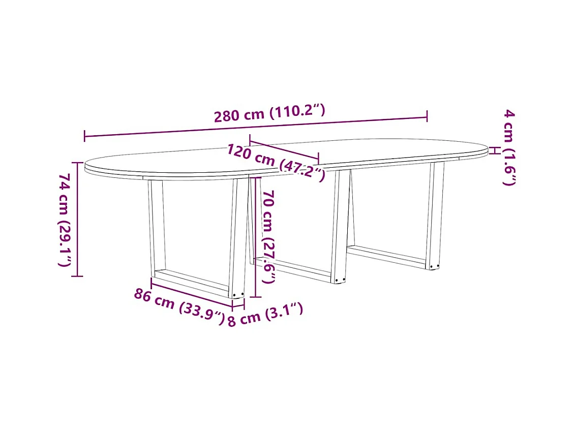 Esstisch Hellbraun 280x120x74 cm Massivholz Eiche Oval