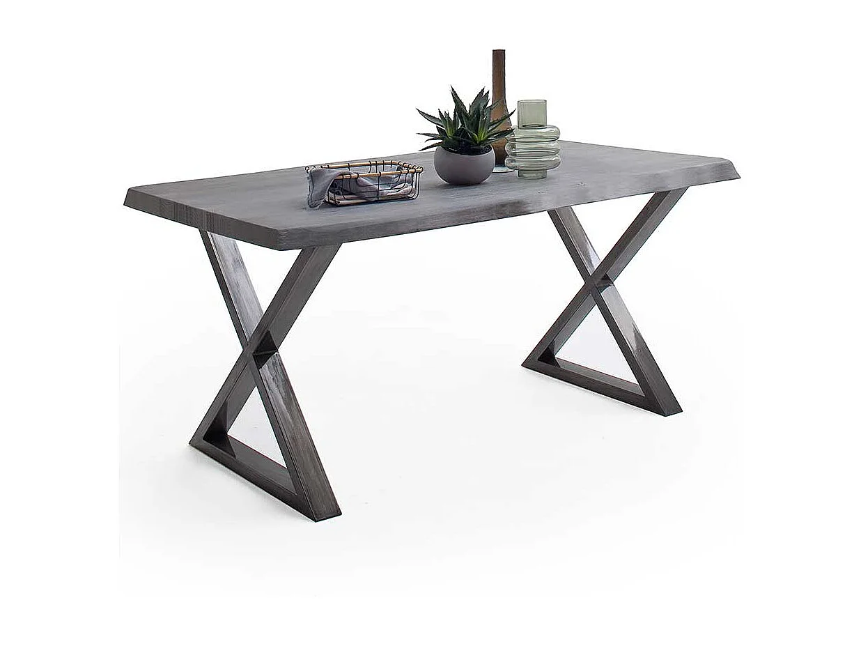 Esstisch Holztisch mit X Gestell und natürlicher Baumkante