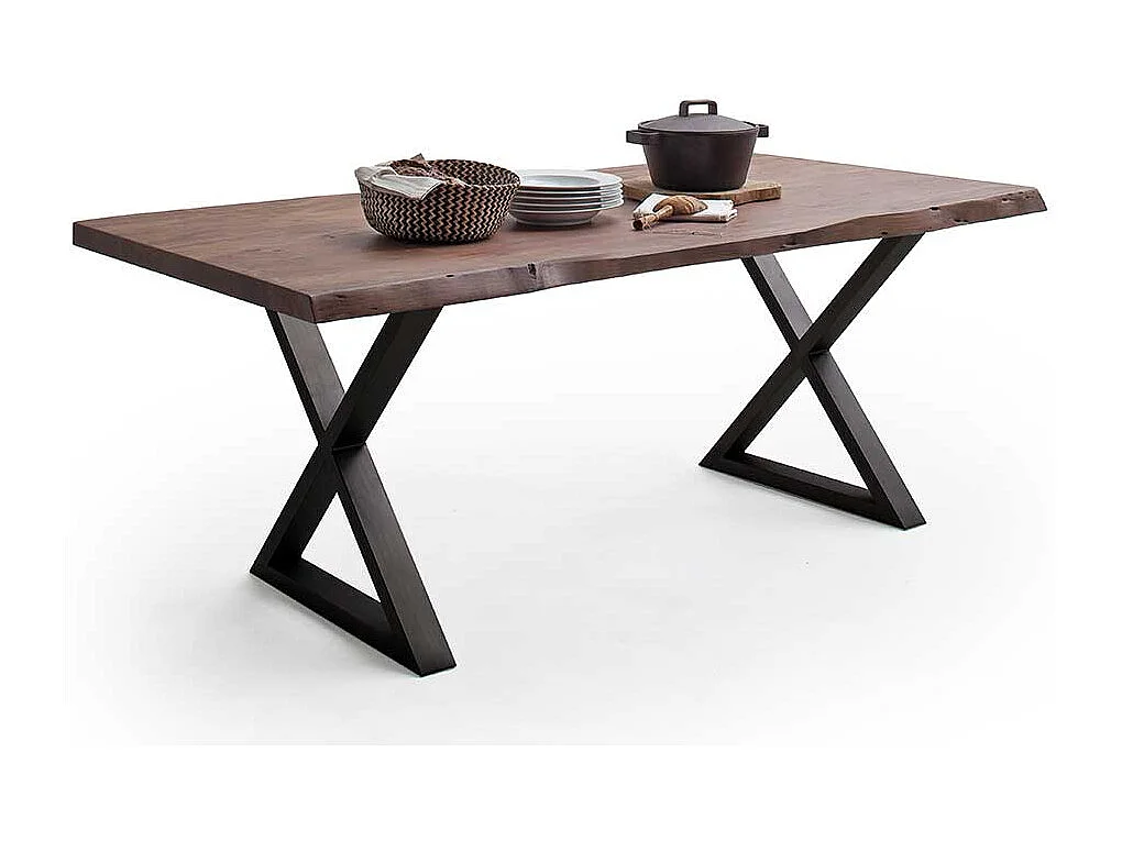 Esstisch Holztisch mit X Gestell und natürlicher Baumkante