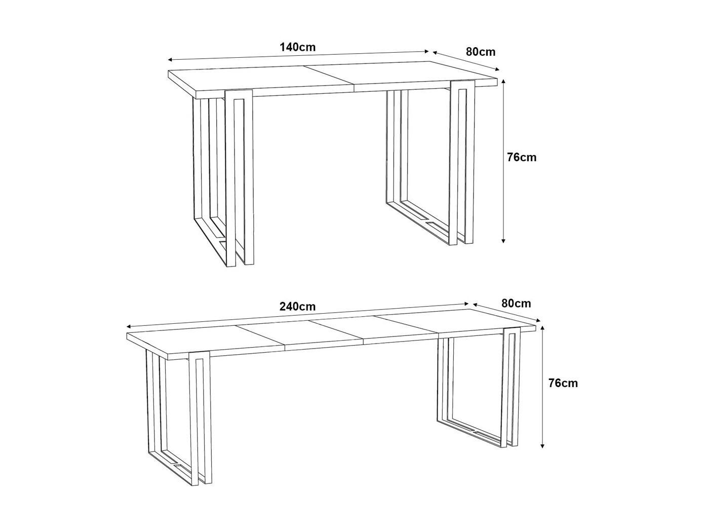 ESSTISCH Horten 140 Pietra Grigia Schwarz / Weiß 140/240 / 80 / 76cm