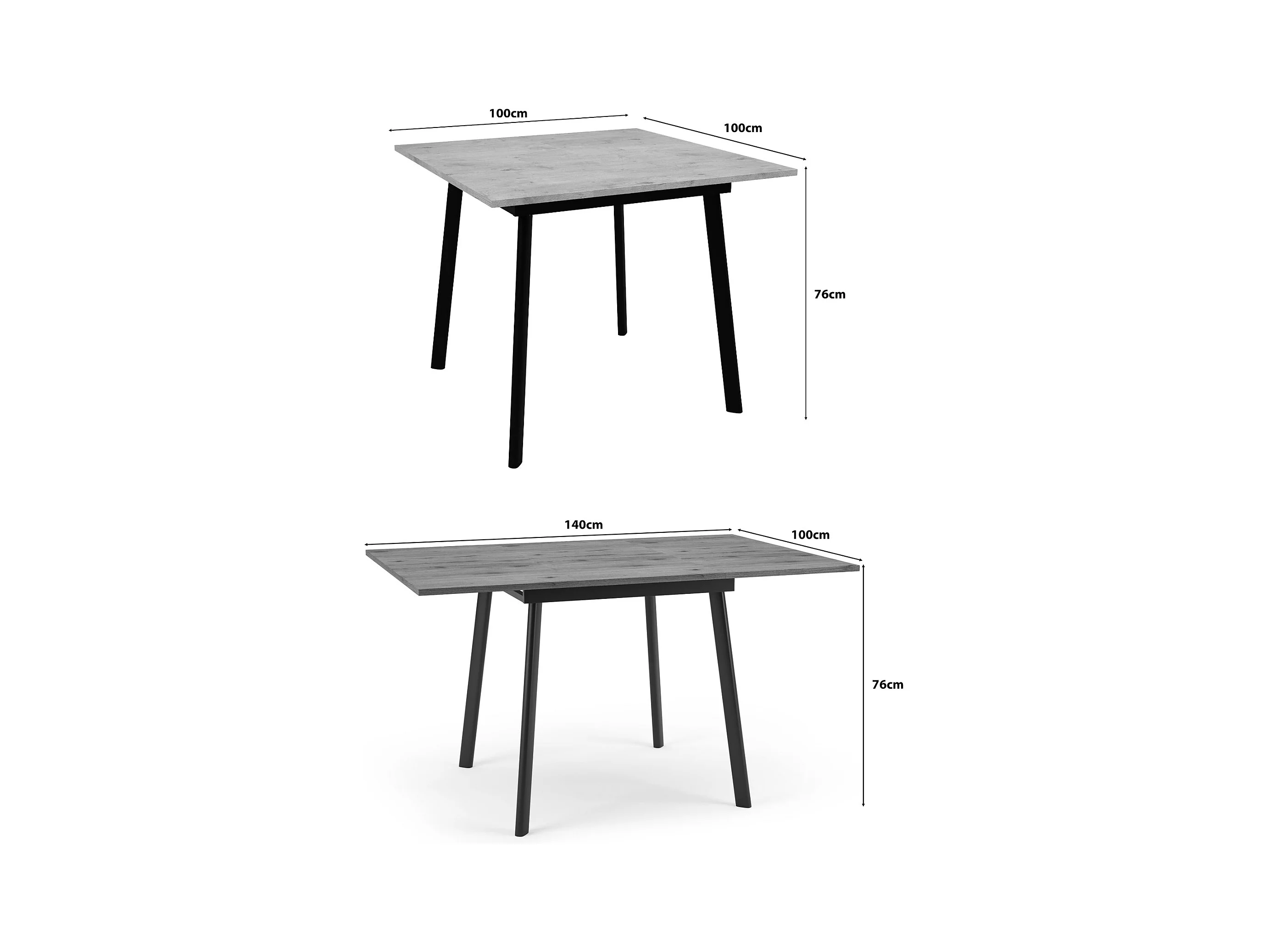 ESSTISCH Ibsen Chicago Concrete Dunkelgrau / Graphit 100/140 / 100 / 76 cm