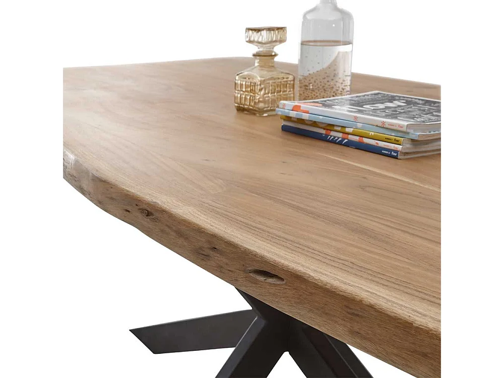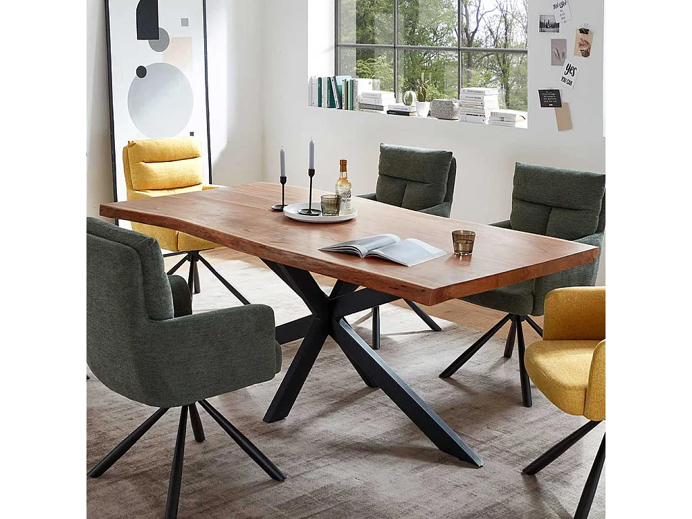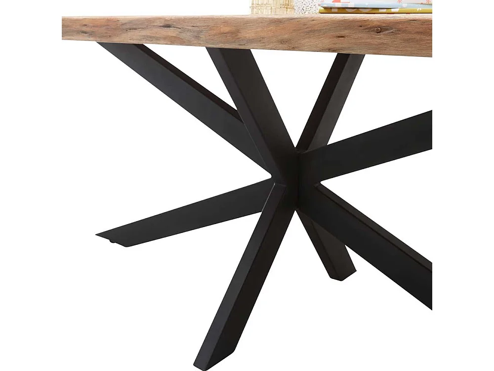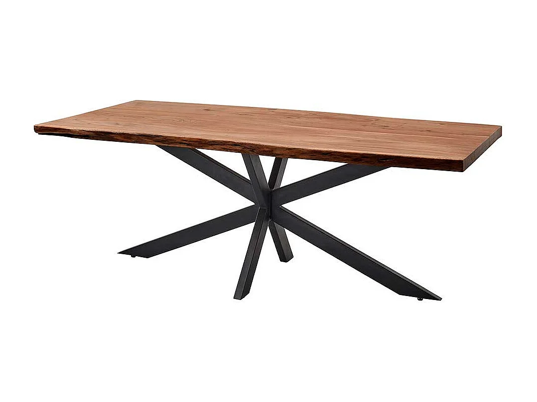 Esstisch im rustikalen Stil Massivholzplatte und Spider Gestell