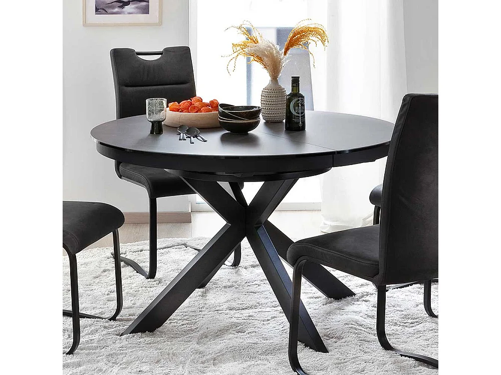 Esstisch in Schwarz und Anthrazit einer Einlegeplatte