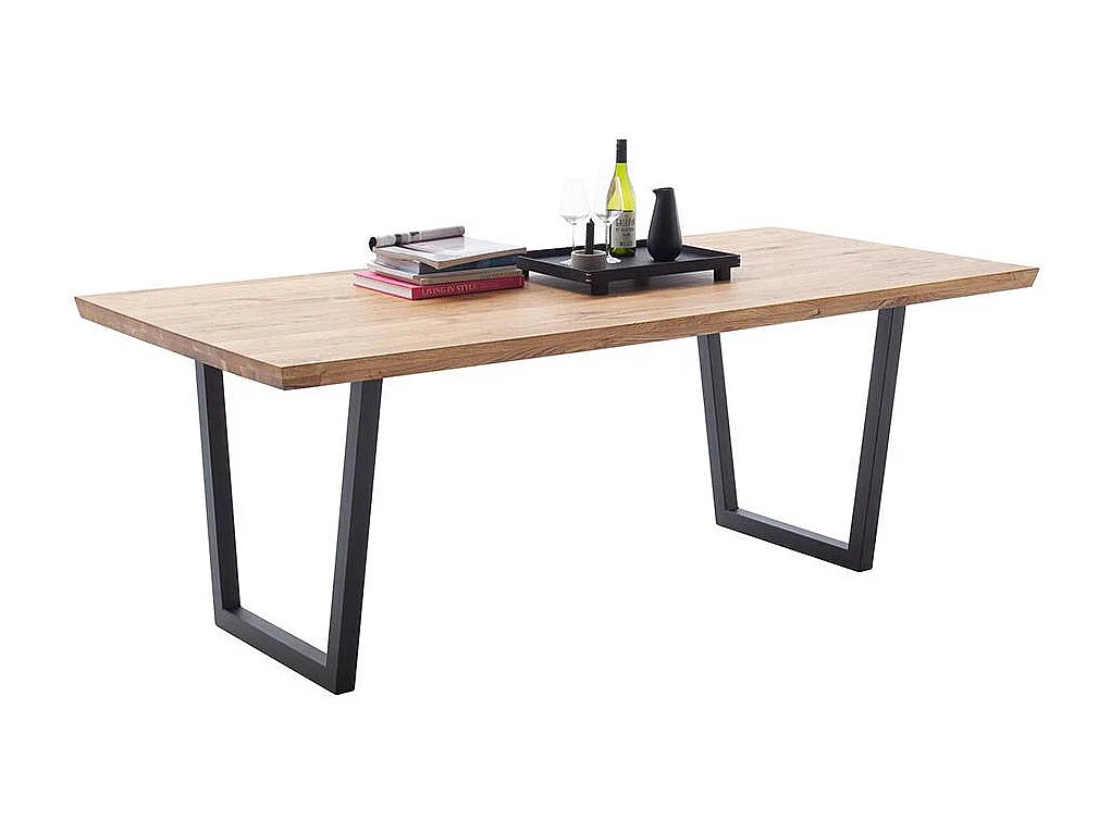 Esstisch Küchentisch aus Balkeneiche Massivholz und Stahl