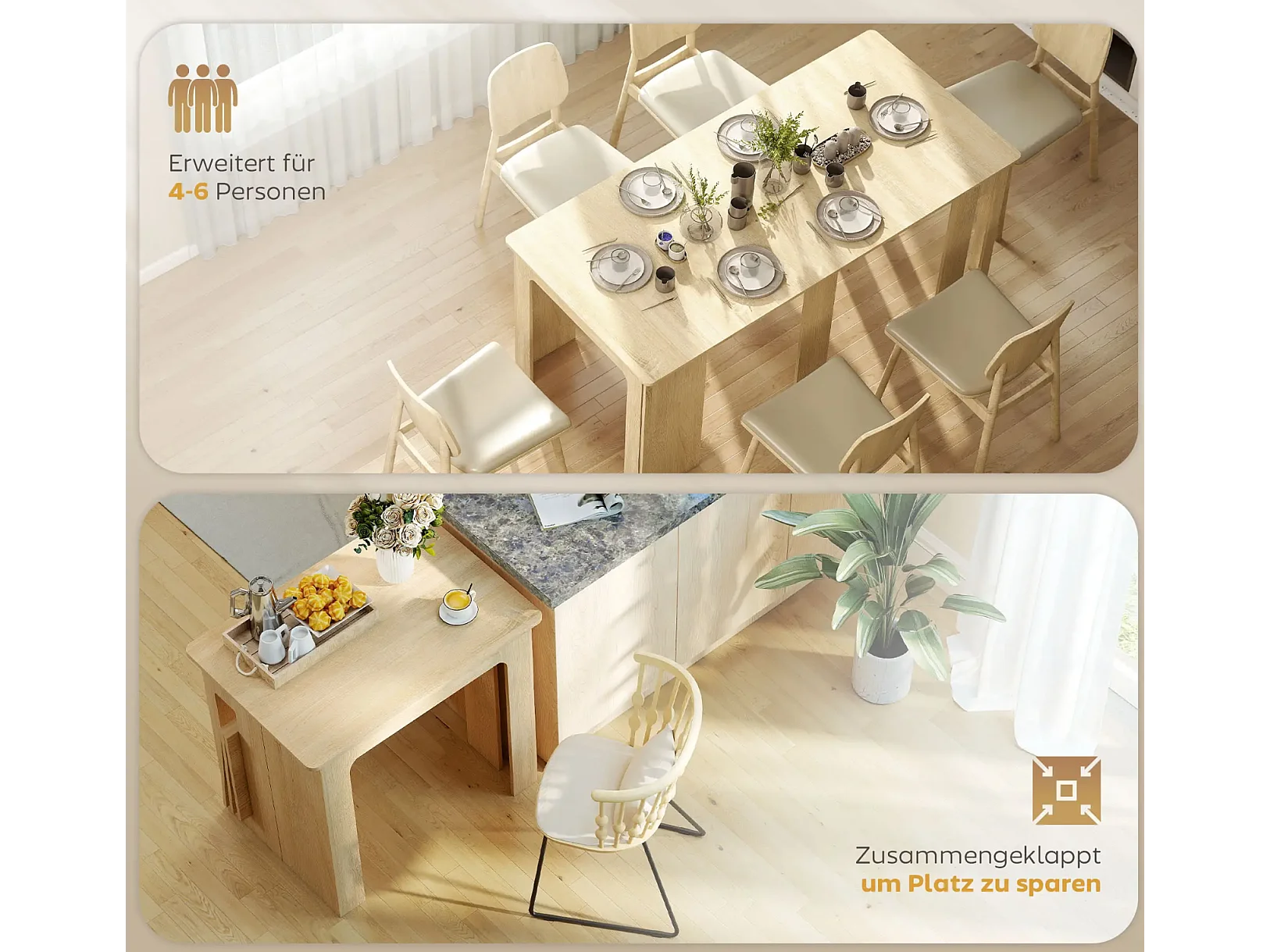 Esstisch, Klapptisch, ausziehbarer Küchentisch, Esszimmertisch, Spanplatten, 60-180 x 85 x 75 cm