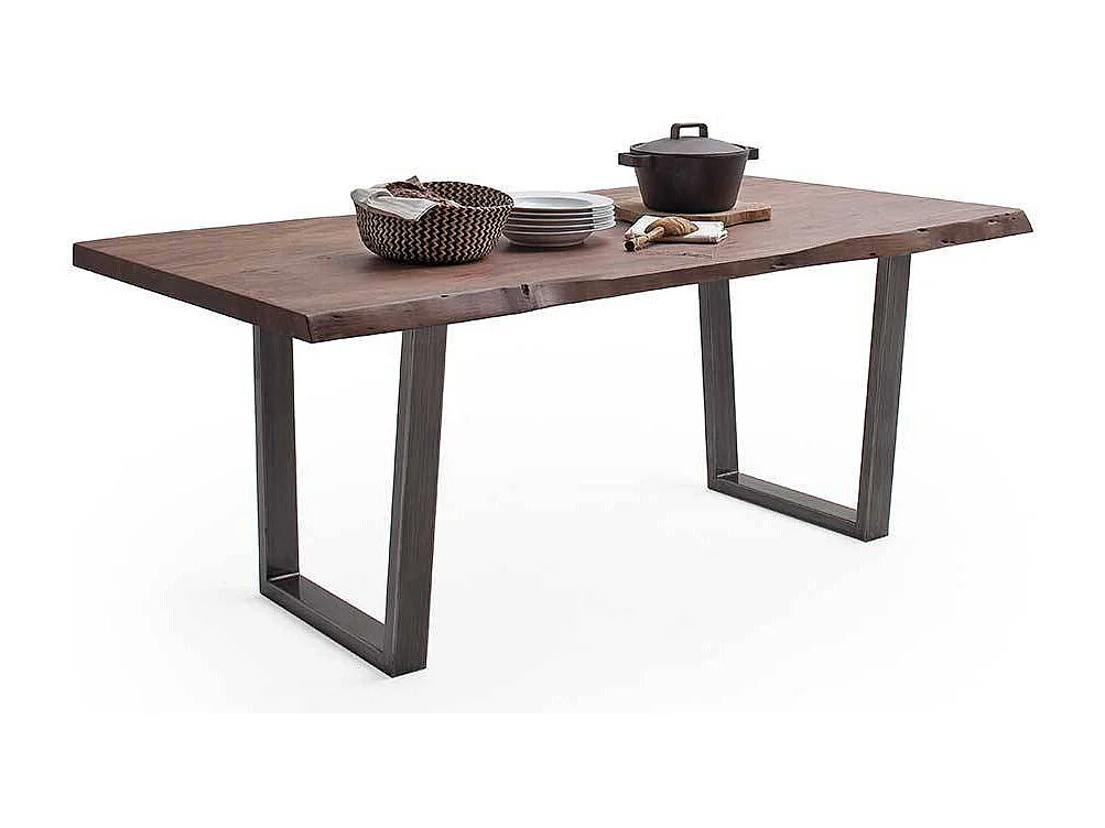 Esstisch Massivholztisch mit natürlicher Baumkante aus Akazie Massivholz