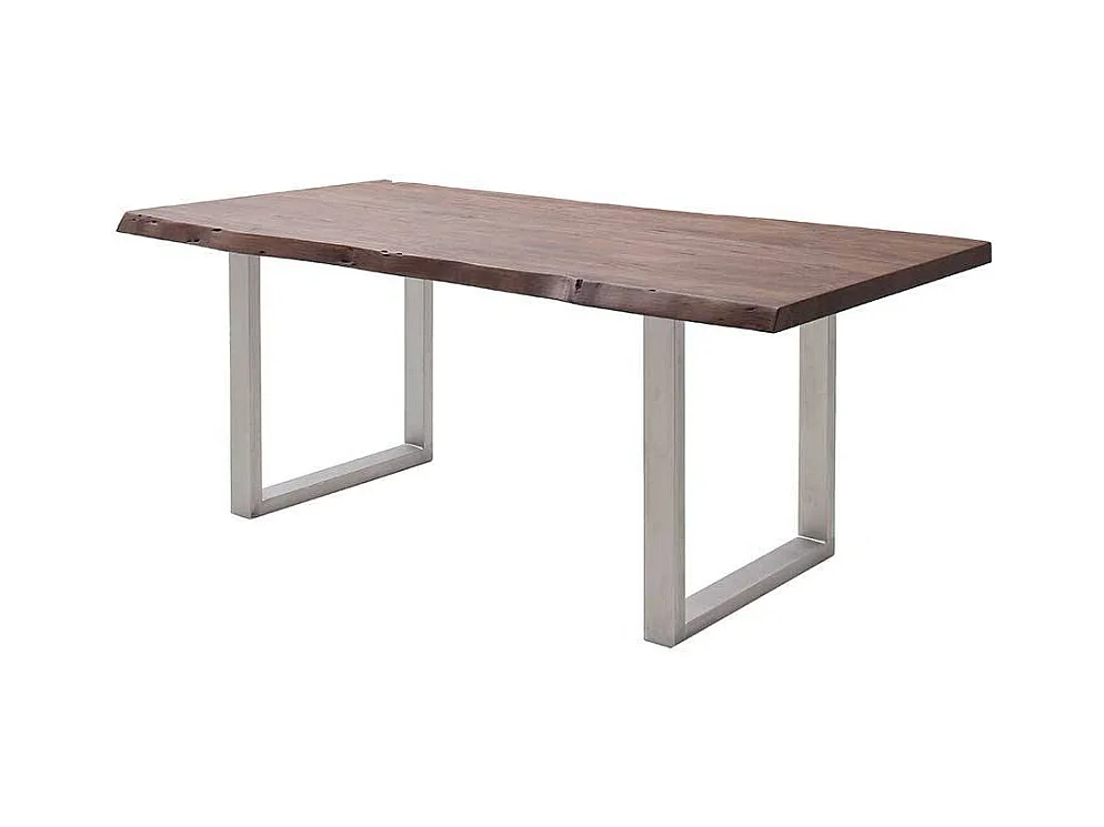 Esstisch Massivholztisch mit natürlicher Baumkante und Bügelgestell