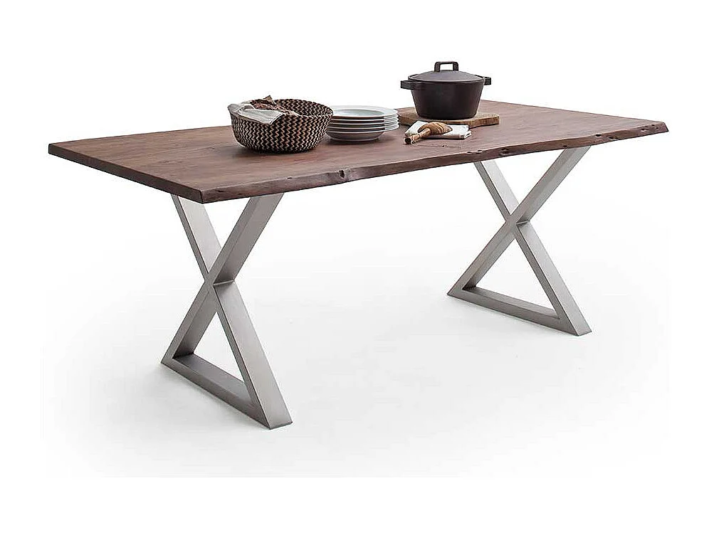 Esstisch Massivholztisch mit X Gestell und natürlicher Baumkante