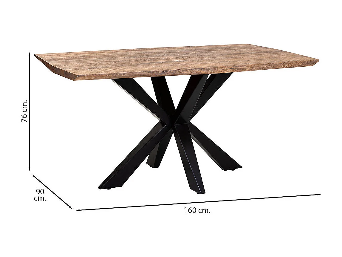 Esstisch mit konischer Kante aus Akazienholz mit Rost-Finish, 160 x 90 x 76 cm